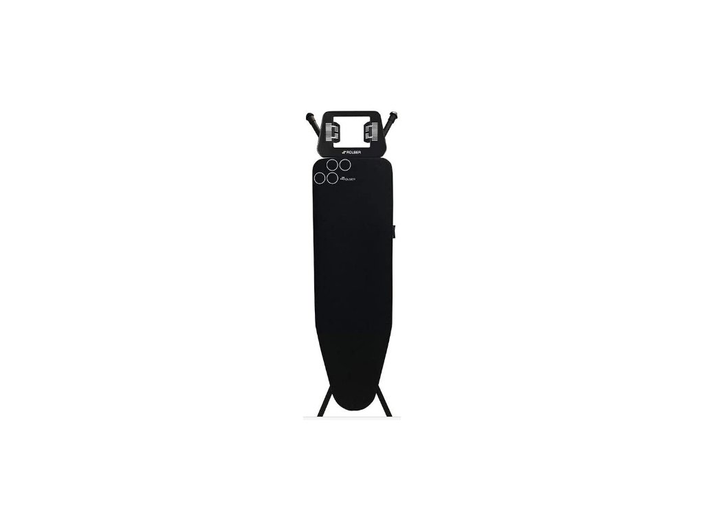 Kombinace elegantního černého designu a praktických funkcí dělá z prkna Rolser K-UNO Black Tube dokonalého pomocníka při žehlení. Perforovaná žehlící deska o velikosti 115 x 35 cm pokrytá vrstvou tepelně odolných kovových mikročástic zajišťuje optimální prostup páry a tím pomáhá zajistit perfektní výsledek při žehlení. Stabilní konstrukci snadno složíte pomocí pojistky pod žehlící deskou a zajistíte proti samovolnému rozložení. Tvarovaná odkládací plocha o velikosti 30 x 20 cm nabízí dostatečný prostor pro bezpečné odložení žehličky.