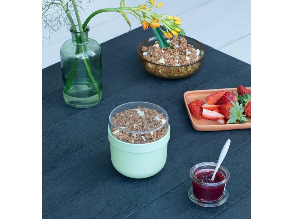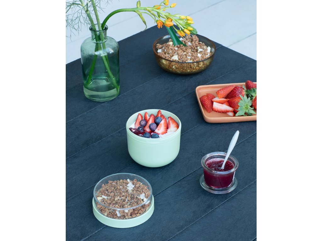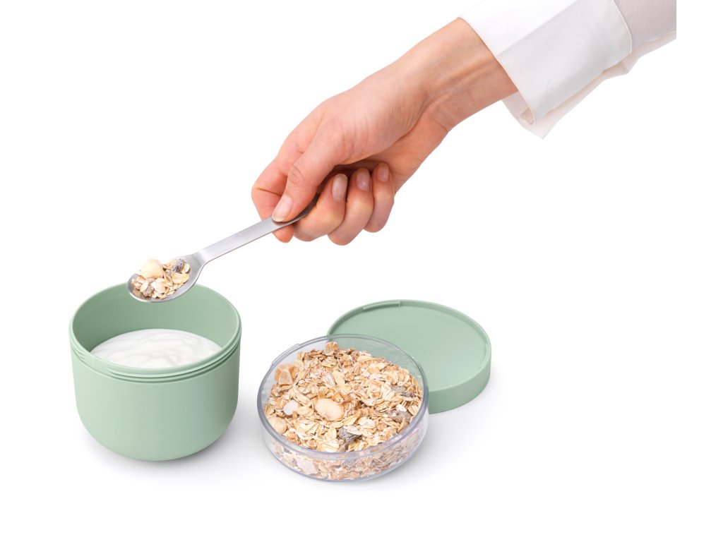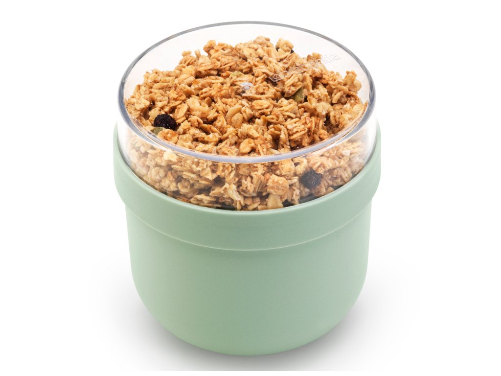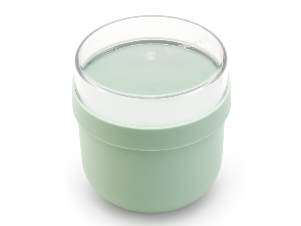 Snězte své nejdůležitější jídlo dne v práci, ve škole, ve vlaku nebo kdekoli, kde si vyberete, s touto snídaňovou mísou Brabantia Make & Take. Stačí do něj naplnit 0,5 litru vaší oblíbené snídaně. A nebojte se rozlitého jogurtu nebo rozmočených vloček – tato super miska má průhlednou plastovou horní nádobu pro oddělené skladování a nepropustné těsnění.