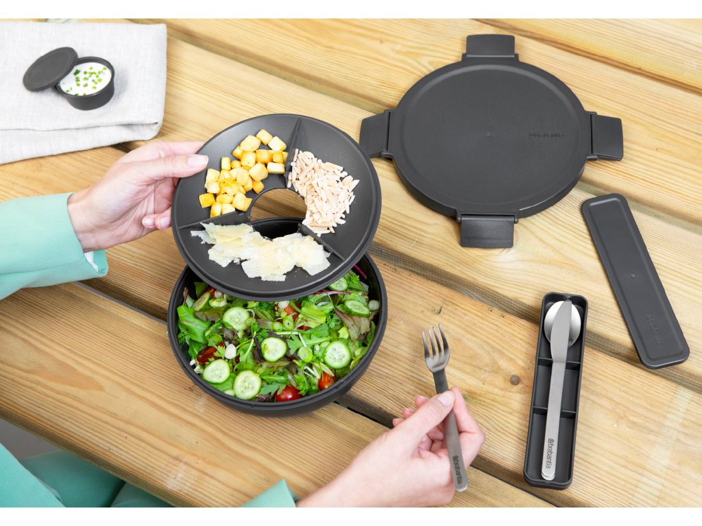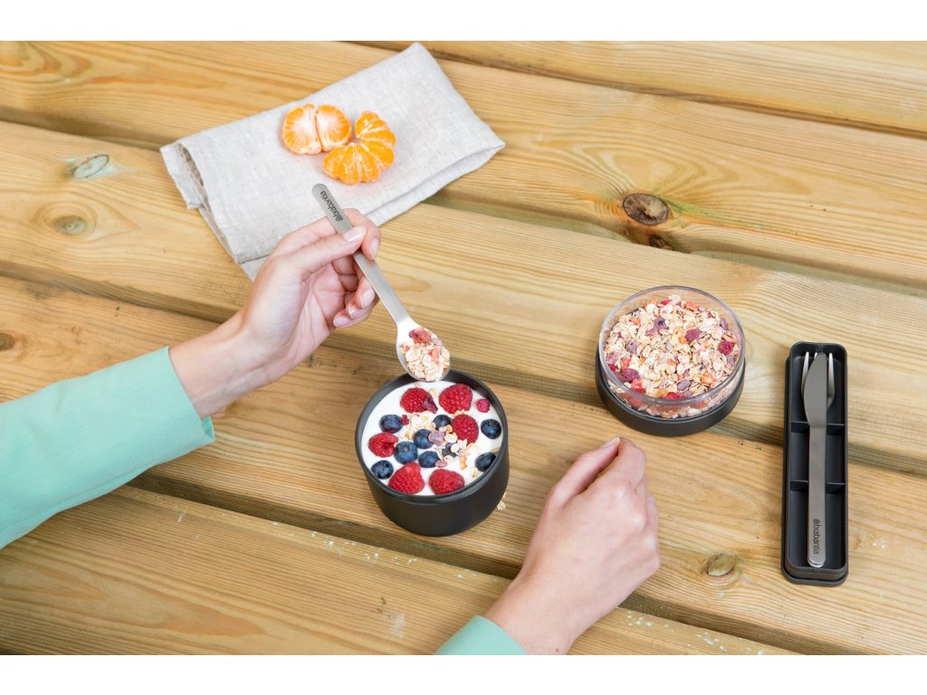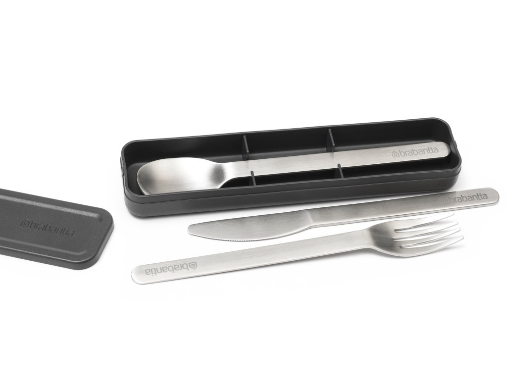 Přestaňte používat plastové příbory, když jste na cestách, použijte tuto opakovaně použitelnou sadu příborů Brabantia Make & Take. Nůž, vidlička a lžíce z vysoce kvalitní nerezové oceli. Snadno se čistí, lze mýt v myčce a bezpečně zabalené v kompaktním pouzdře. Sada pro opakované použití po dlouhou, dlouhou dobu!