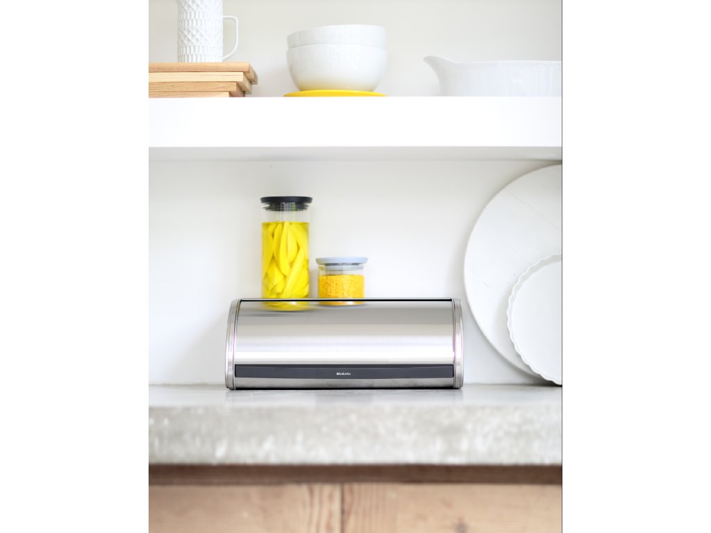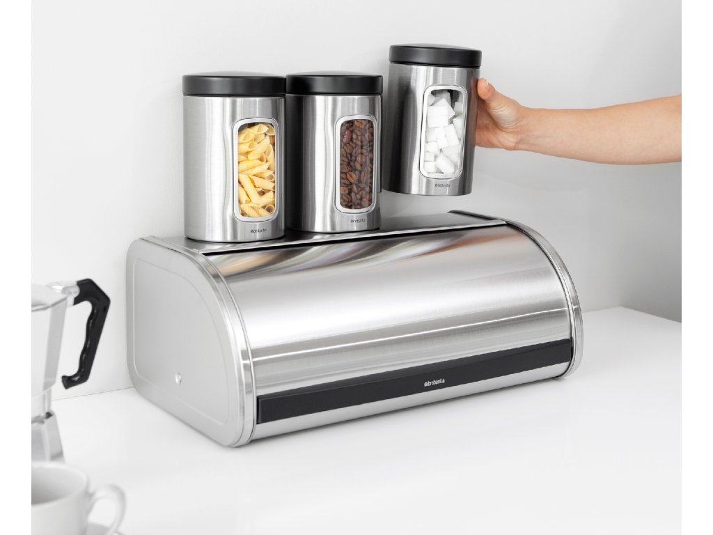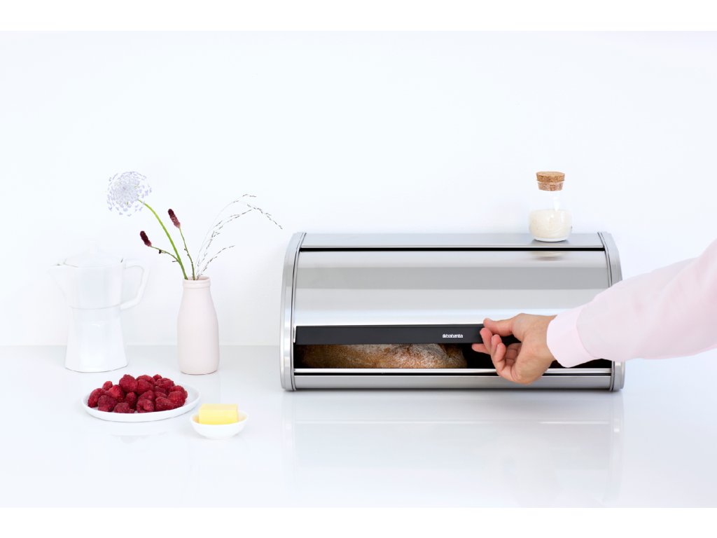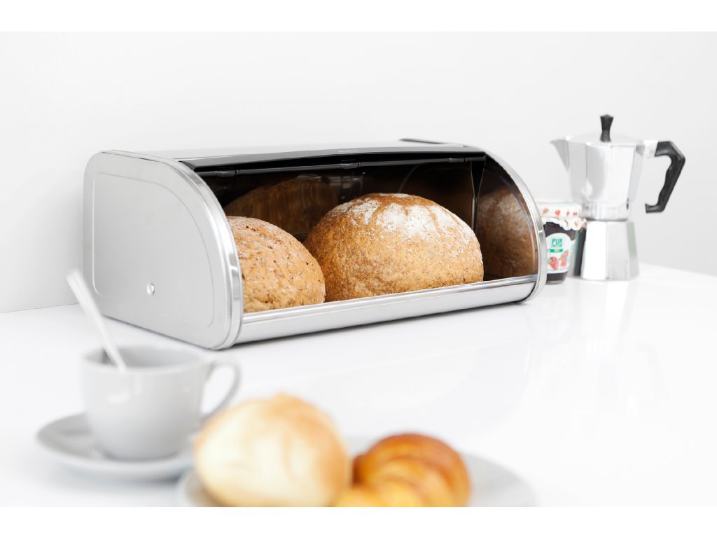 Tento chlebník pojme až dva bochníky chleba. Má velké držadlo pro snadné otevírání. Je také prostorově úsporný: víko zmizí uvnitř chlebníku. Praktický a stylový doplněk do vaší kuchyně!