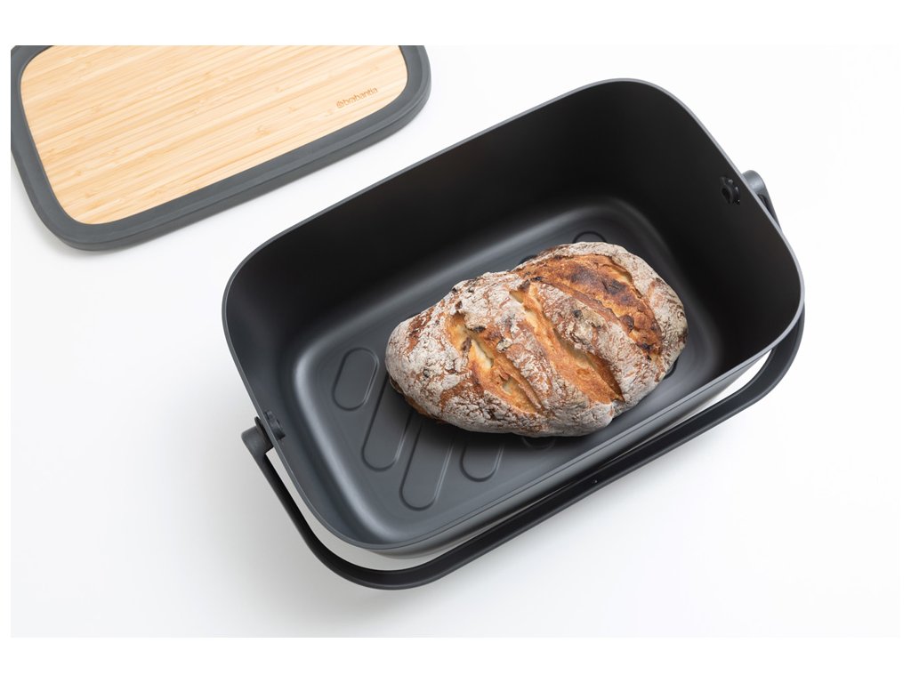 Krásný chlebník opatřený rukojetí pro přenášení přímo z vašeho pultu nebo skříně na stůl.