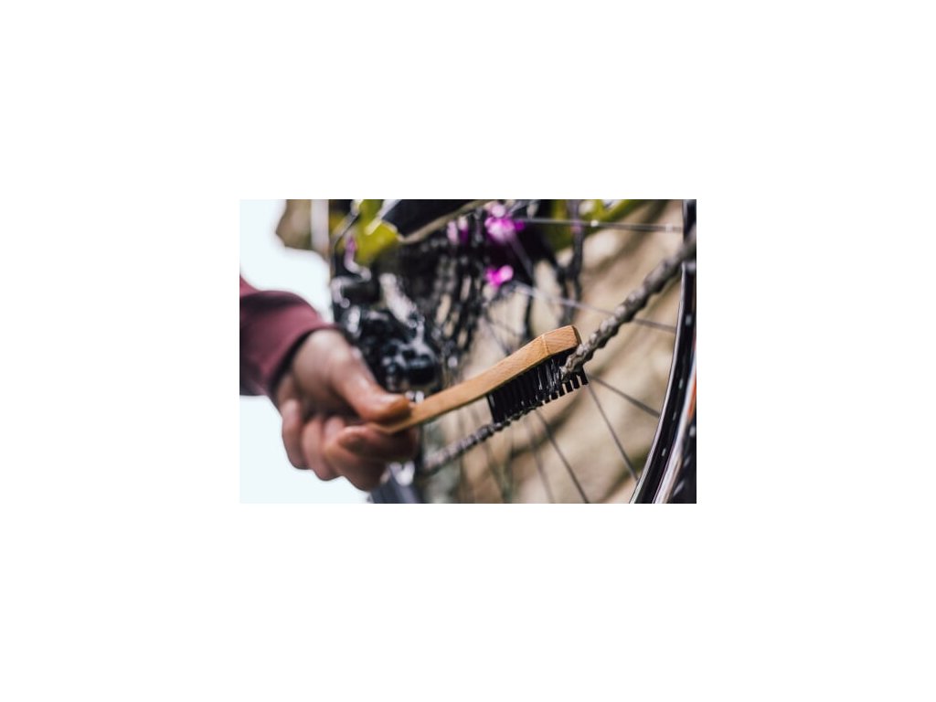 Odolné štětiny s nízkým středovým profilem jsou uzpůsobeny tomu, aby dokonale obejmuly řetěz. Prostřední řada kartáče disponuje tužšími štětinami, které vydrhnout váš řetěz opravdu do hloubky. Hrubé nečistoty z kladek přehazovačky pak spolehlivě seškrábnete prostřednictvím zkosené přední části hlavy kartáče.