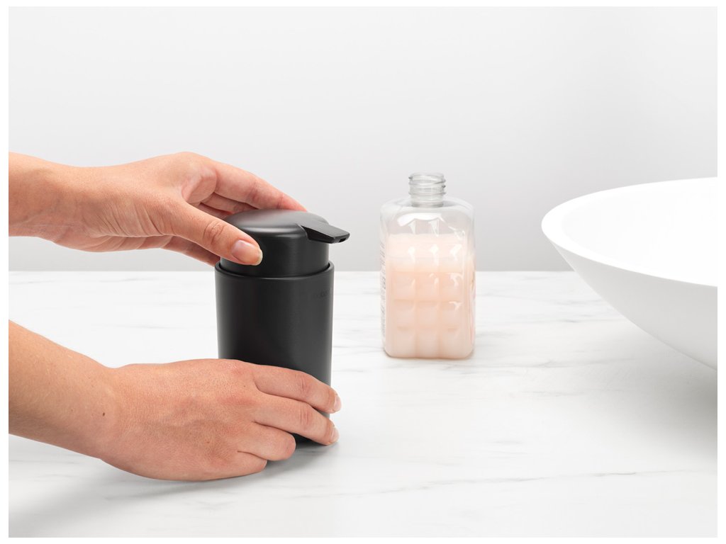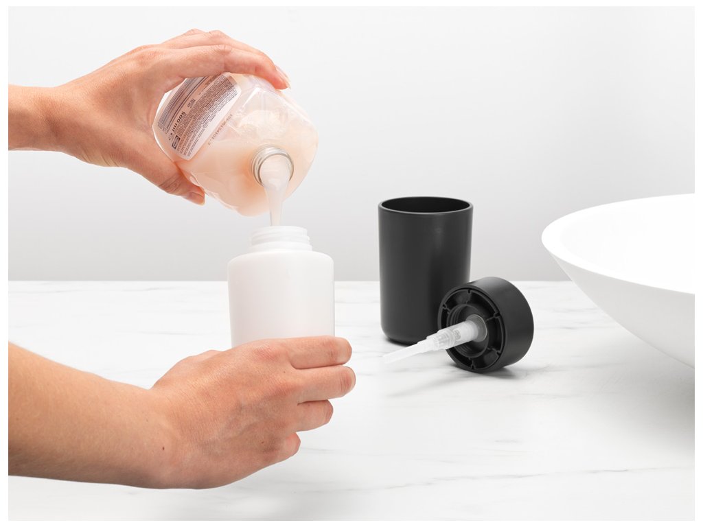 Stylový koupelnový doplněk pro každého, kdo myslí vážně na hygienu rukou a design. Velký otvor pro doplňování, neklouzavá základna.