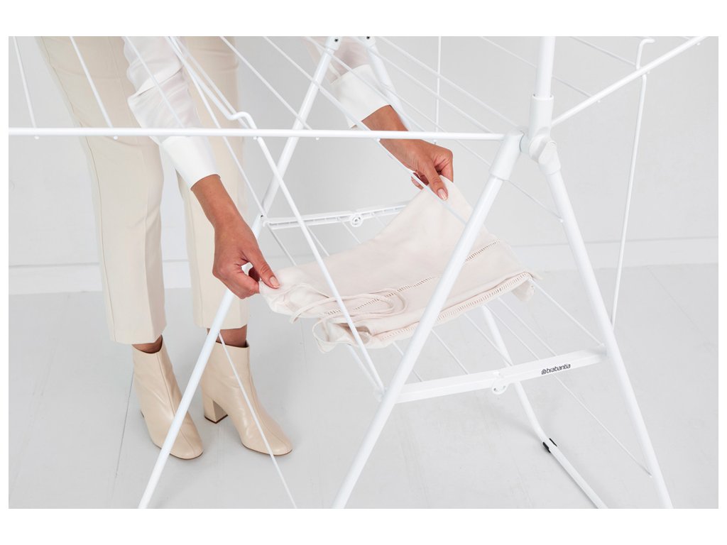 Šetřete čas a energii přirozeným sušením prádla - ušetřete místo zavěšením prádla na tento inteligentní XXL stojan! Díky věšáku a 25 metrům flexibilního sušicího prostoru je tento sušicí stojan HangOn jestě prostornější.