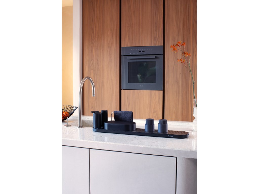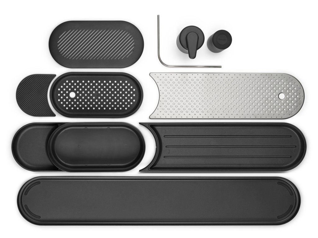 Odkapávací miska uvnitř umožňuje proudění vzduchu, čímž se předchází nepříjemným zápachům. Můžete přidat sušicí tyč na utěrku na nádobí a samostatný zásobník udržuje organizér na místě spolu s dávkovačem mýdla a ždímačem mýdla. A je toho víc! Podnos má dokonce část na sušení nádobí s odnímatelnou nerezovou deskou. Elegantní a stylové!