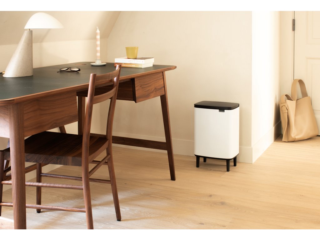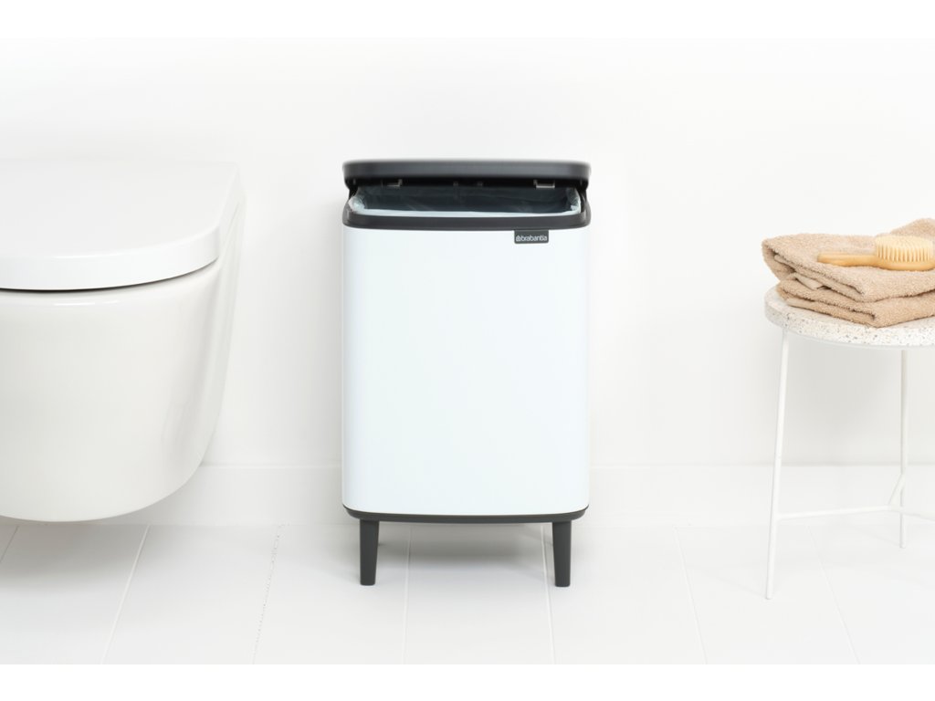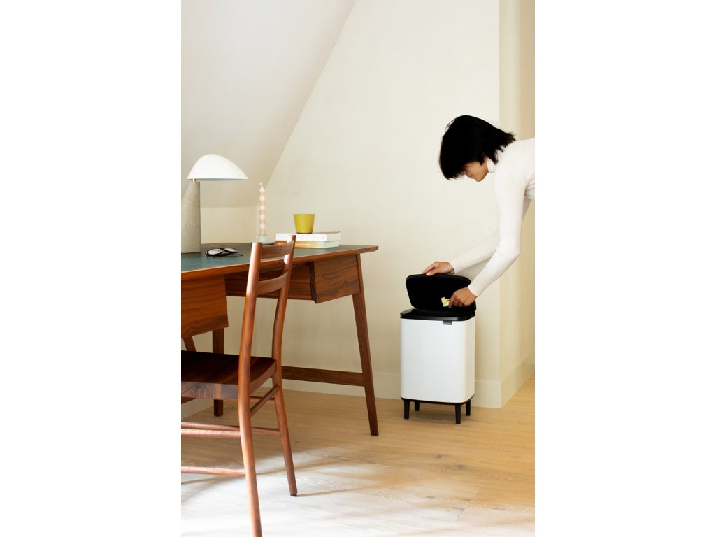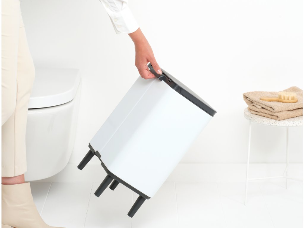 Odpadkový koš Brabantia Bo HI o objemu 12 litrů je kráska na čtyřech elegantních nohách. Jedinečné víko se snadno zvedá z levé, pravé a přední části koše. Takže už žádné kroucení rukou, abyste něco vložili. Další plus: integrované úchyty pro snadné přemisťování a vyprazdňování. A díky své velikosti a designu se tento koš dobře hodí do každé místnosti. Pohádkový koš!