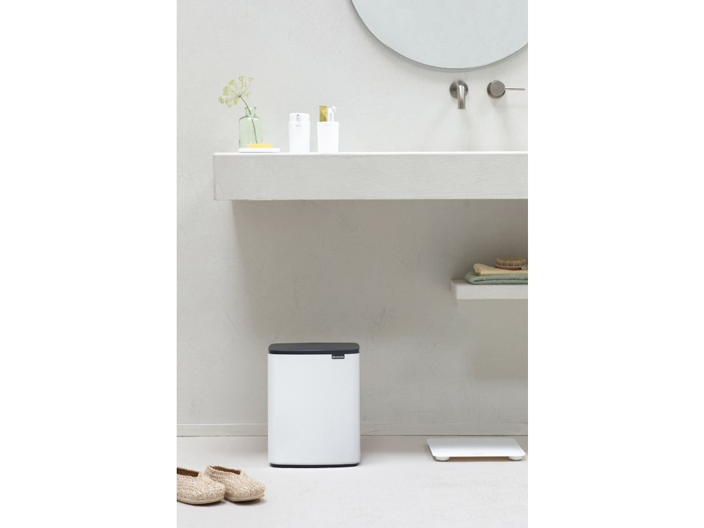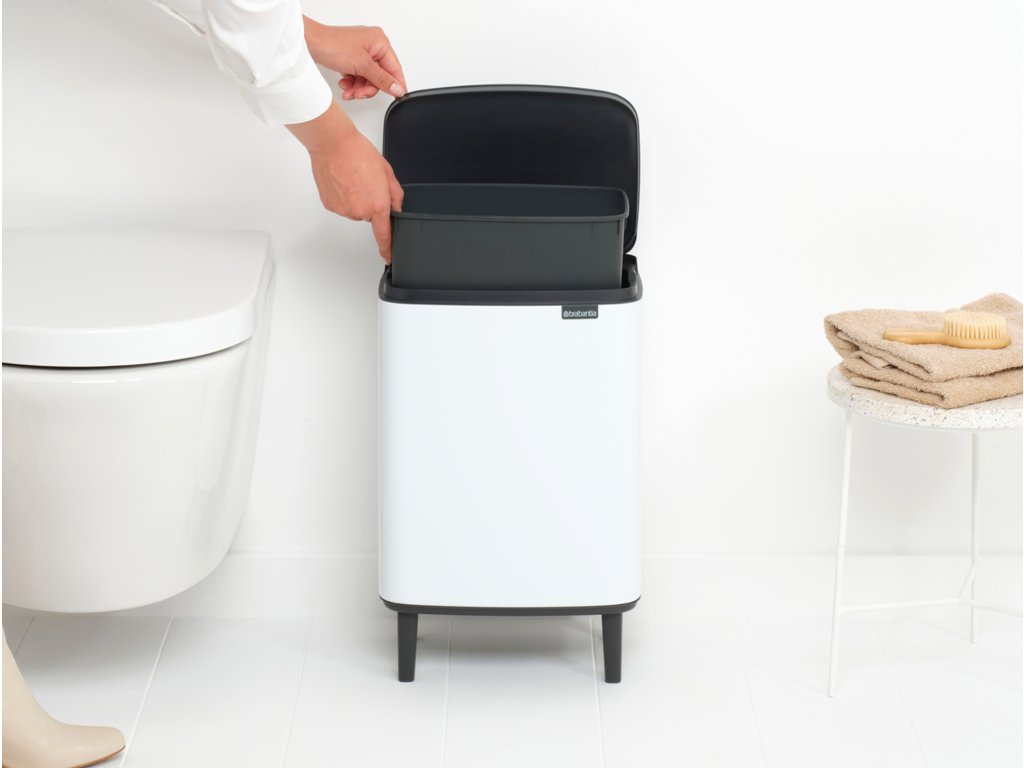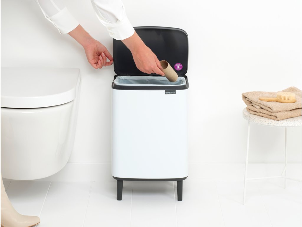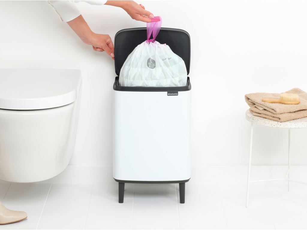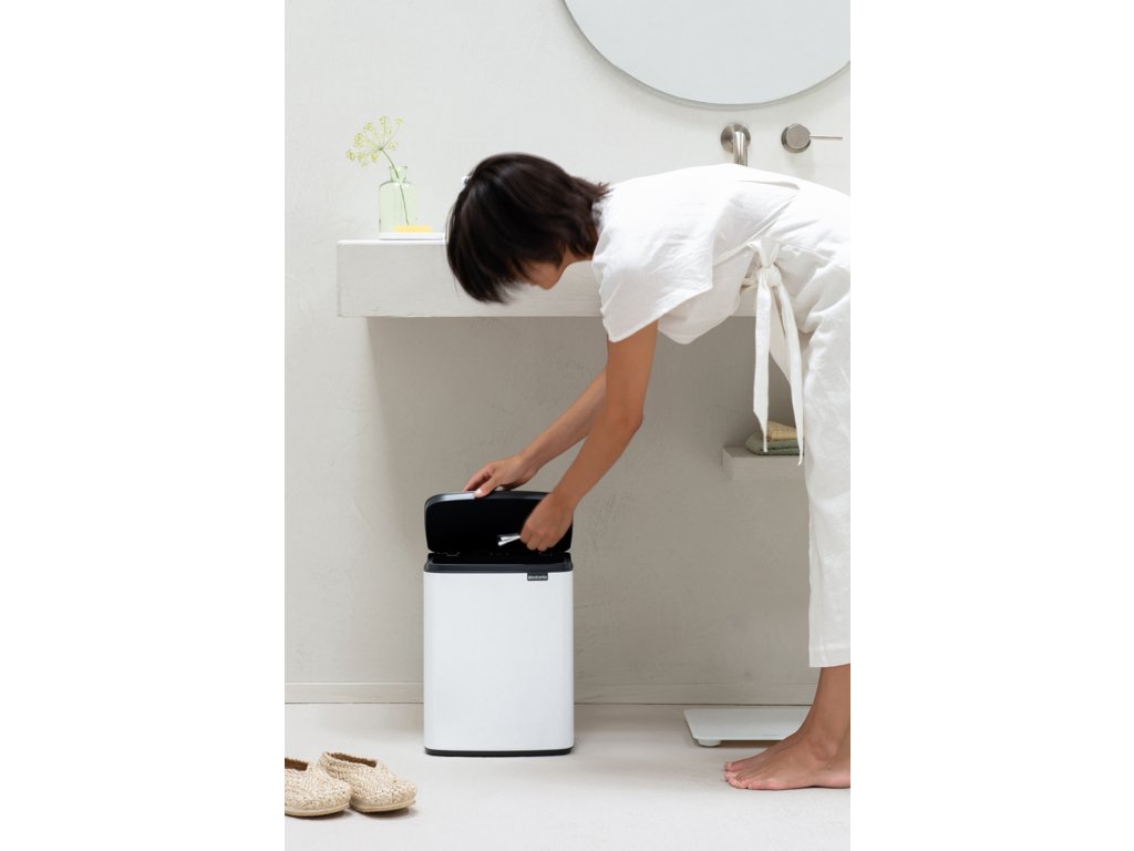Odpadkový koš Brabantia Bo HI o objemu 12 litrů je kráska na čtyřech elegantních nohách. Jedinečné víko se snadno zvedá z levé, pravé a přední části koše. Takže už žádné kroucení rukou, abyste něco vložili. Další plus: integrované úchyty pro snadné přemisťování a vyprazdňování. A díky své velikosti a designu se tento koš dobře hodí do každé místnosti. Pohádkový koš!