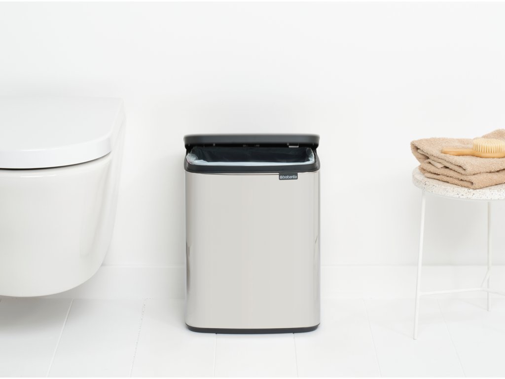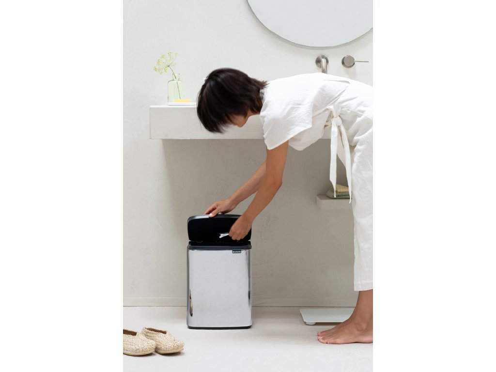 Odpadkový koš Brabantia Bo o objemu 12 litrů je docela praktický koš. Unikátní víko se snadno zvedá z levé, pravé i přední části koše. Takže už nemusíte kroutit rukou, abyste do něj něco vložili. Další plus: integrované úchyty pro snadné přemisťování a vysypávání. A díky své velikosti a designu se tento koš dobře vyjímá v každé místnosti. Bo jede!