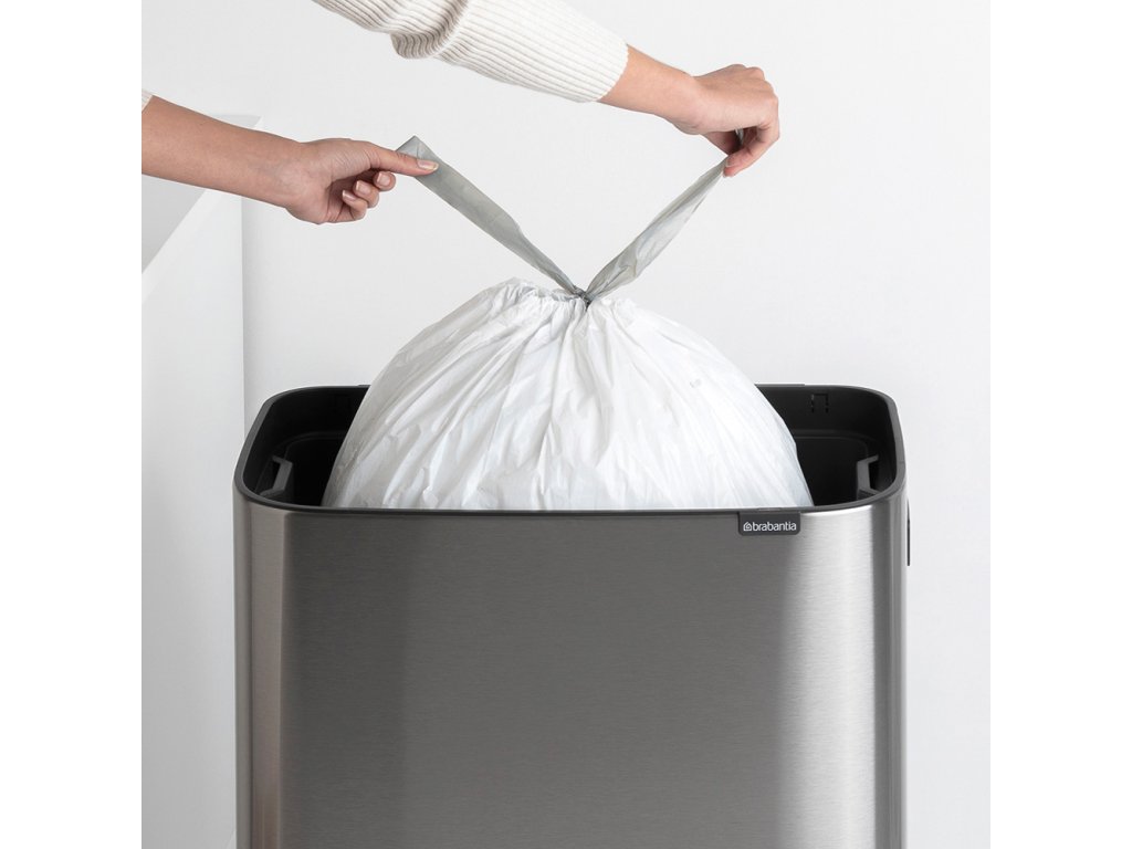 Pro tento model jsou samozřejmě k dispozici také sáčky na odpadky PerfectFit - barevný kód uvnitř jednotky víka ukazuje, jakou velikost sáčku na odpadky potřebuje váš koš Bo.