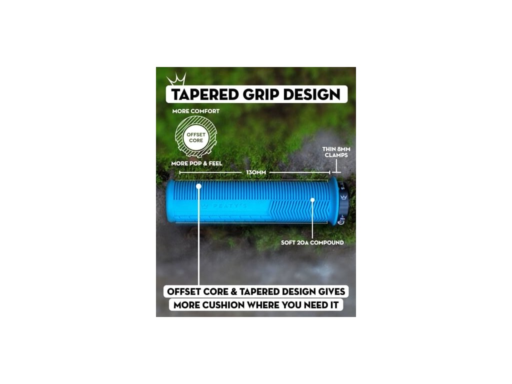 KLÍČOVÉ VLASTNOSTI • DVĚ VARIANTY TEXTURY - MUSHROOM (CELODENNÍ KOMFORT) A KNURL (PRECIZNÍ KONTROLA) • DVĚ TLOUŠŤKY – THIN (30-32 MM) A THICK (32-34 MM) • MĚKKÁ SMĚS 20A PRO OPTIMÁLNÍ POMĚR PŘILNAVOSTI A ŽIVOTNOSTI • TĚLO GRIPU ROZŠIŘUJÍCÍ SE SMĚREM KE KONCI ŘIDÍTEK A EXCENTRICKY ULOŽENÉ JÁDRO ZLEPŠUJÍ TLUMENÍ NÁRAZŮ NA HORNÍ STRANĚ A ZÁROVEŇ PŘINÁŠÍ LEPŠÍ CIT A KONTROLU • SPECIFICKÁ TEXTURA POD PALCEM K PREVENCI OTLAČENÍ • VÝRAZNÉ PROTISKLUZOVÉ HRANY V OBLASTI PRSTŮ JSOU VYKROJENY DOVNITŘ MATERIÁLU PRO MAXIMÁLNÍ PŘILNAVOST A CIT • O BEZPEČNÉ USAZENÍ NA ŘIDÍTKÁCH SE STARÁ ZÚŽENÉ JÁDRO, VYROBENÉ Z 80 % Z RECYKLOVANÉHO OCEÁNSKÉHO PLASTU A 8 MM ŠIROKÁ ELOXOVANÁ HLINÍKOVÁ OBJÍMKA. • POLOVIČNÍ PŘÍRUBA A NÁBĚH NA MALÍČEK VÁM POMOHOU RYCHLE SE ZORIENTOVAT, KDYŽ VEZMETE KOLO DO RUKY • CELKOVÁ DÉLKA GRIPU JE 138 MM, VČETNĚ 8 MM ŠIROKÝCH OBJÍMEK. • GRIPY JSOU K DISPOZICI V ČERNÉ, ČERVENÉ, MANGOVÉ, TYRKYSOVÉ A BŘIDLICOVÉ BARVĚ. • VYMĚNITELNÉ ELOXOVANÉ HLINÍKOVÉ OBJÍMKY JSOU K DISPOZICI VE 12TI BAREVNÝCH PROVEDENÍCH (K DOSTÁNÍ SAMOSTATNĚ)Doplňkové parametry