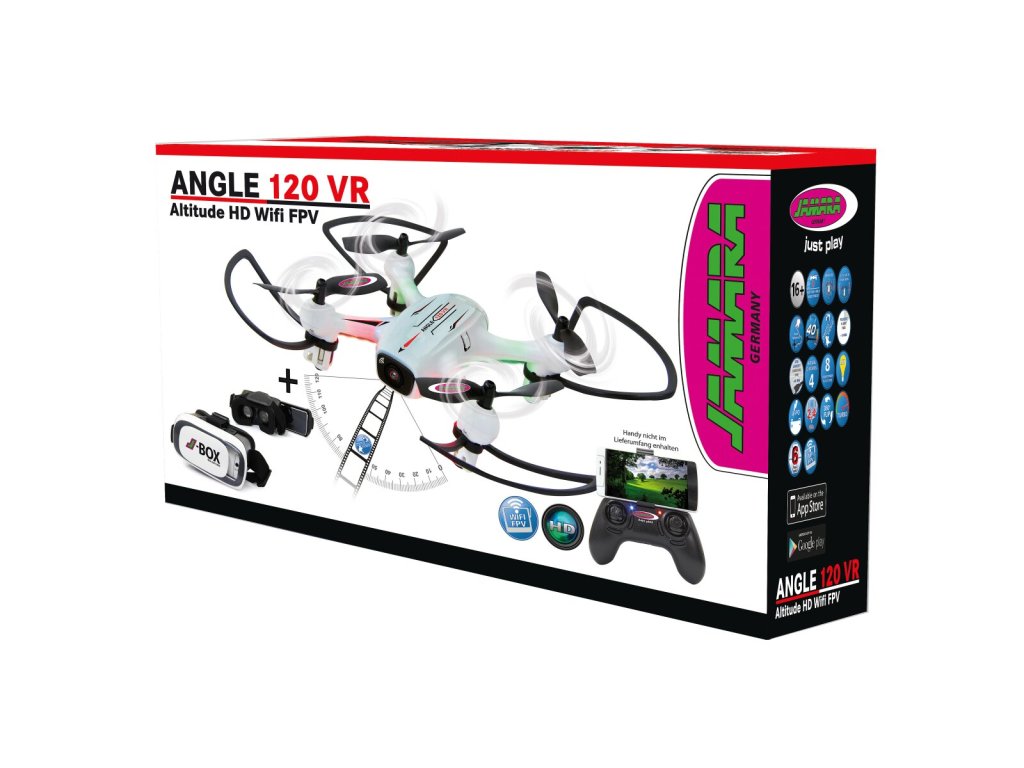 Poměrně malý dron s velkým potenciálem, to je Angle 120. Lze s ním létat buď pomocí vysílače, nebo aplikace. Čtyři výkonné motory s vysokým točivým momentem zajišťují rychlost až 40 km/h. Samostabilizující 6osá gyroskopická technologie zajišťuje bezpečný let. Kromě toho samozřejmě disponuje funkcemi, které jsou u Jamary již zavedené, jako je Altitude AHA, Headless, funkce Easy Back a dokonce i Track following, při které prstem na mobilním telefonu ukážete trasu letu a Angle se po ní automaticky vydá. Nasaďte si tedy brýle pro virtuální realitu a ponořte se do dechberoucího zážitku z letu.
