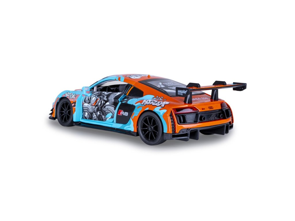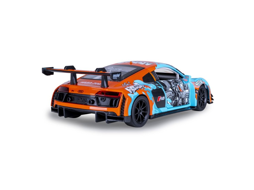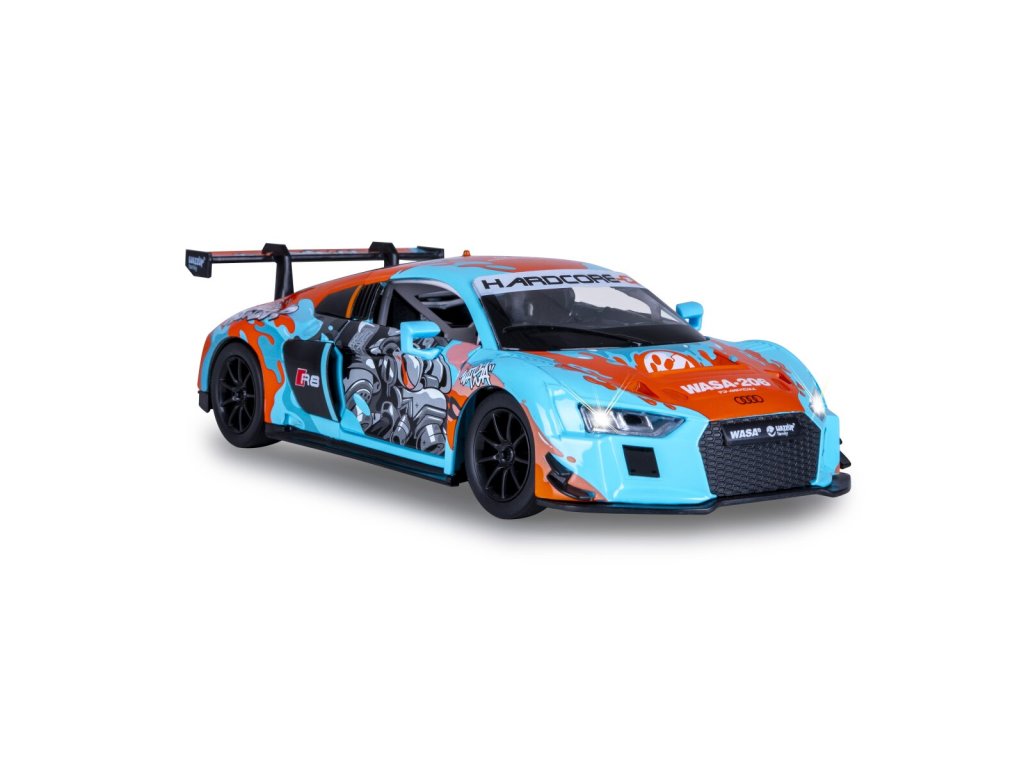Audi R8 LMS je vysoce výkonný závodní vůz vyvinutý společností Audi Sport pro účast v mezinárodních závodech GT. Díky svému výjimečnému výkonu a aerodynamickému designu stanovuje R8 LMS laťku v motoristickém sportu. Nadchne fanoušky po celém světě svou čistou dynamikou a technickou precizností. JAMARA přináší tento jedinečný vůz do vaší sbírky v podobě vysoce kvalitního kovového modelu DIECAST v měřítku 1:24 plného jemných detailů, které nadchnou každého nadšence. Tento oficiálně licencovaný model zaujme svým věrným tvarem a pečlivě navrženým interiérem, který dokonale odráží nekompromisní závodní charakter Audi R8 LMS. Gumová kola, průhledné čelní sklo a LED světla dodávají modelu obzvláště realistický vzhled a jemně zpracované detaily podtrhují vysokou kvalitu zpracování. Manuální otevírání dveří umožňuje nahlédnout do kokpitu, který je navržen tak, aby pojmul malou figurku. Otevření dveří nebo jemné stisknutí karoserie spustí autentické zvukové efekty – akustický zážitek, který model oživí. Tento model vyrobený z robustního materiálu DieCast kombinuje hrací hodnotu s kvalitou sběratelského kousku. Audi R8 LMS od JAMARA je nejen dynamickým magnetem pro vaši sbírku, ale také nezbytností pro každého fanouška motoristického sportu a sběratele výkonných závodních aut.