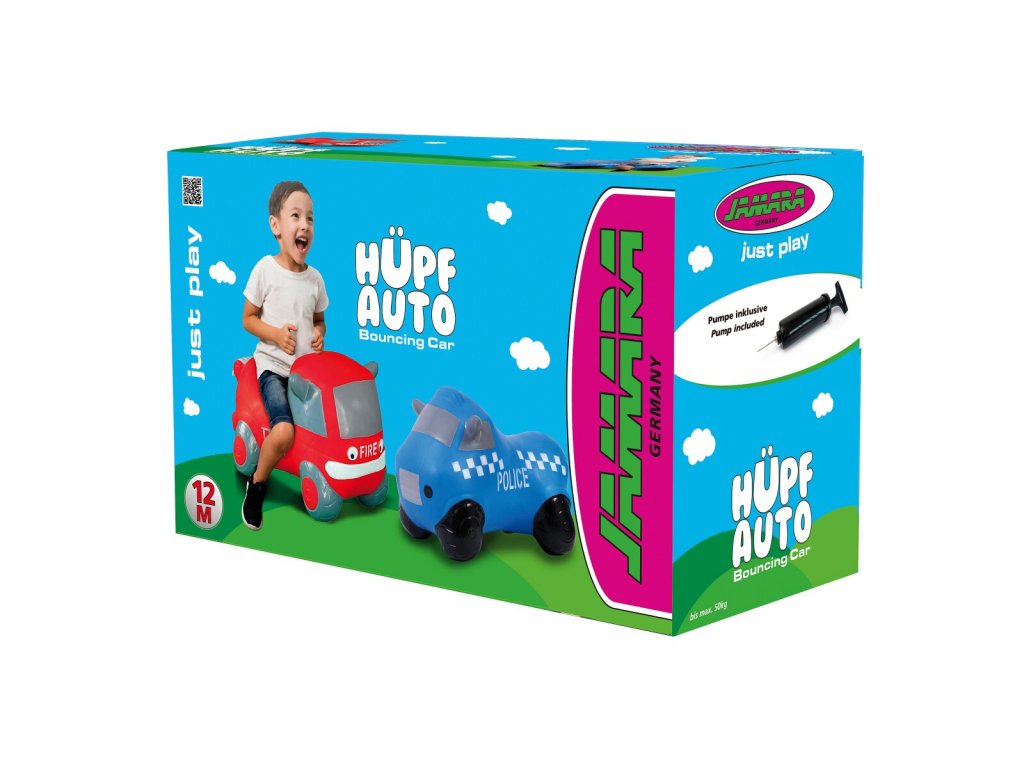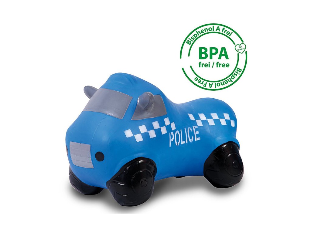 JAMARA vrací do dětských pokojíčků klasickou dětskou hru - skákací hopsadlo. Malé modré policejní auto, spolehlivý partner malých policistů, slibuje nejen spoustu zábavy při skákání, ale také podporuje smysl pro rovnováhu a motoriku. S přiloženou pumpičkou lze auto snadno nafouknout během několika minut. Skákací hračky neobsahují BPA, jsou odolné a vhodné do interiéru i na zahradu nebo na terasu. Boční zrcátka skákacího auta slouží jako řídítka a umožňují dítěti bezpečný úchop. Stačí tedy skočit na auto pevně se držet nohama na zemi a divoce skákat! Díky čtyřem kolům stojí hopsadlo auto stabilně na zemi. Roztomilé modré policejní auto z rodiny skákacích hopsadel od JAMARY si jistě získá srdce nejednoho dítěte.