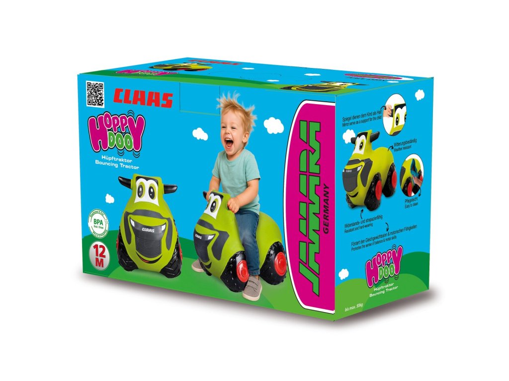 JAMARA vrací do dětských pokojíčků klasickou dětskou hru - skákací hopsadlo. Malý zelený traktor Claas, spolehlivý partner malých traktoristů, slibuje nejen spoustu zábavy při skákání, ale také podporuje smysl pro rovnováhu a motoriku. S přiloženou pumpičkou lze traktor snadno nafouknout během několika minut. Skákací hračky neobsahují BPA, jsou odolné a vhodné do interiéru i na zahradu nebo na terasu. Boční zrcátka skákacího traktoru slouží jako řídítka a umožňují dítěti bezpečný úchop. Stačí tedy skočit na traktor pevně se držet nohama na zemi a divoce skákat! Díky čtyřem kolům stojí hopsadlo traktor stabilně na zemi. Malý zelený traktůrek z rodiny skákacích hopsadel od JAMARY si jistě získá srdce nejednoho dítěte.