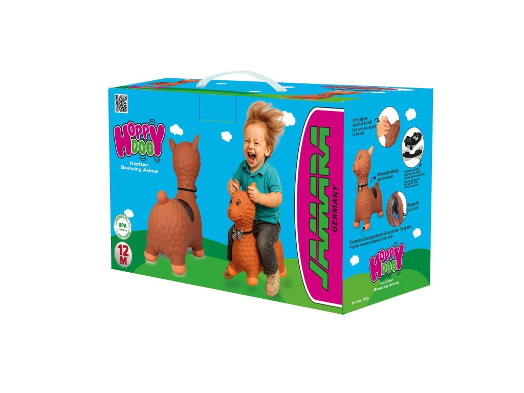 JAMARA vrací do dětských pokojíčků klasickou dětskou hru - skákací hopsadlo. Krásně tvarovaná, ručně malovaná lama v hnědém provedení slibuje nejen spoustu zábavy při skákání, ale také podporuje smysl pro rovnováhu a motoriku. S přiloženou pumpičkou lze zvířátko snadno nafouknout během několika minut. Skákací hračky neobsahují BPA, jsou odolné a vhodné do interiéru i na zahradu nebo na terasu. Uši skákacích hraček slouží jako rukojeť, za kterou se dítě může držet a která mu umožní bezpečný úchop. Stačí tedy zvířátku vyskočit na záda, pevně se držet nohama na zemi a divoce skákat! Díky čtyřem nohám stojí hopsadlo vždy vzpřímeně a stabilně. Roztomilá hnědá lama s mašličkou z rodiny skákacích zvířátek od JAMARY si jistě získá srdce nejednoho dítěte.