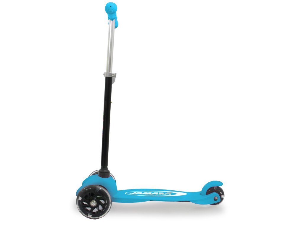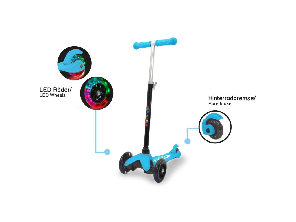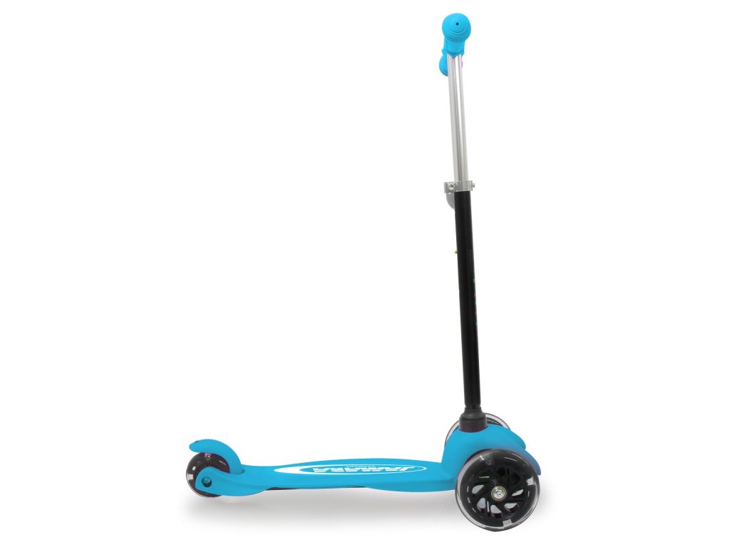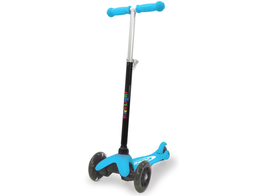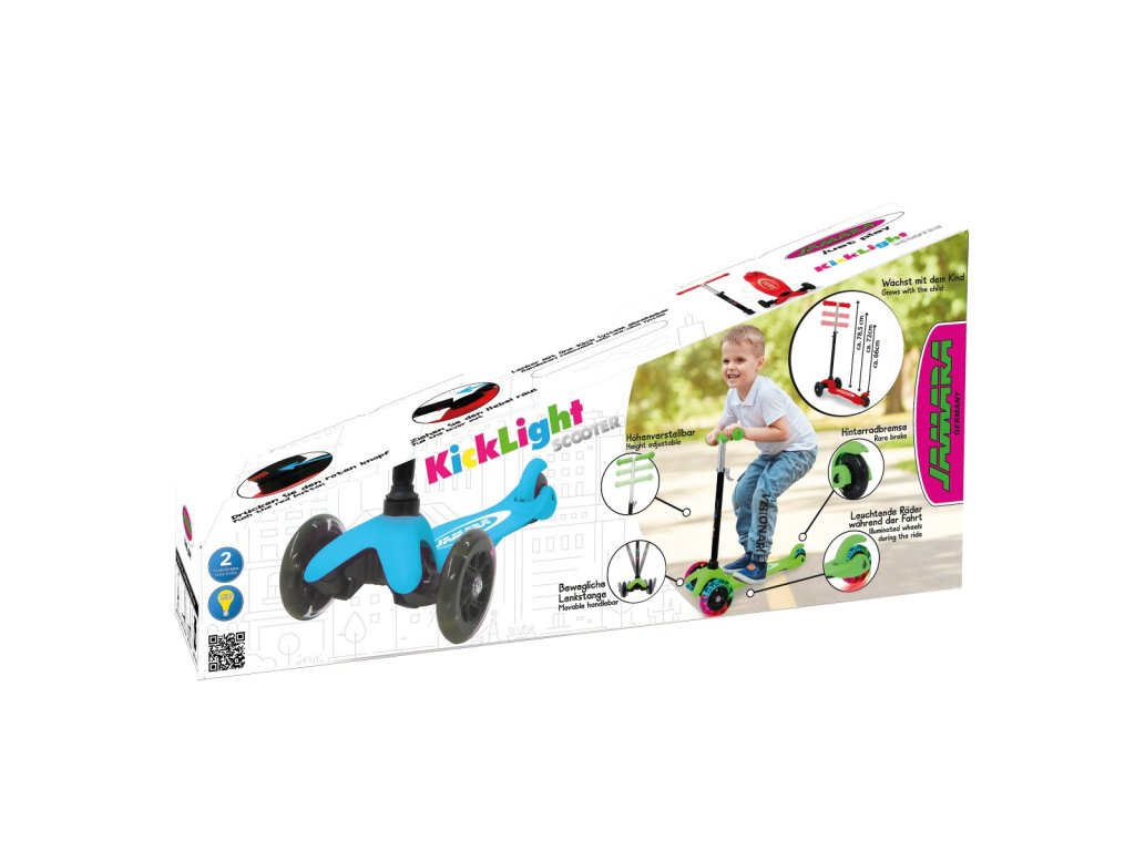 Koloběžka Kick-Light-Scooter od společnosti JAMARA je nezbytnou výbavou pro cool děti. Díky třem pestrým barvám a robustní konstrukci koloběžka upoutá pozornost hned od začátku. Řídítka jsou pohyblivá pro změnu směru jízdy a výškově nastavitelná pro přizpůsobení velikosti a díky pevným gumovým rukojetím s chrániči proti nárazu nabízí přilnavost a ochranu zároveň. Řídítka lze jedním kliknutím odejmout, což usnadňuje přepravu koloběžky a šetří místo. Nejpřitažlivějším prvkem jsou však parádní LED kolečka vpředu a vzadu, která se při otáčení rozsvítí jasnými barvami (baterie není potřeba). Díky dvěma velkým kolečkům vpředu a jednomu kolečku s nášlapnou brzdou vzadu je koloběžka JAMARA Kick Light ideální pro začátečníky a pro trénink smyslu pro rovnováhu.
