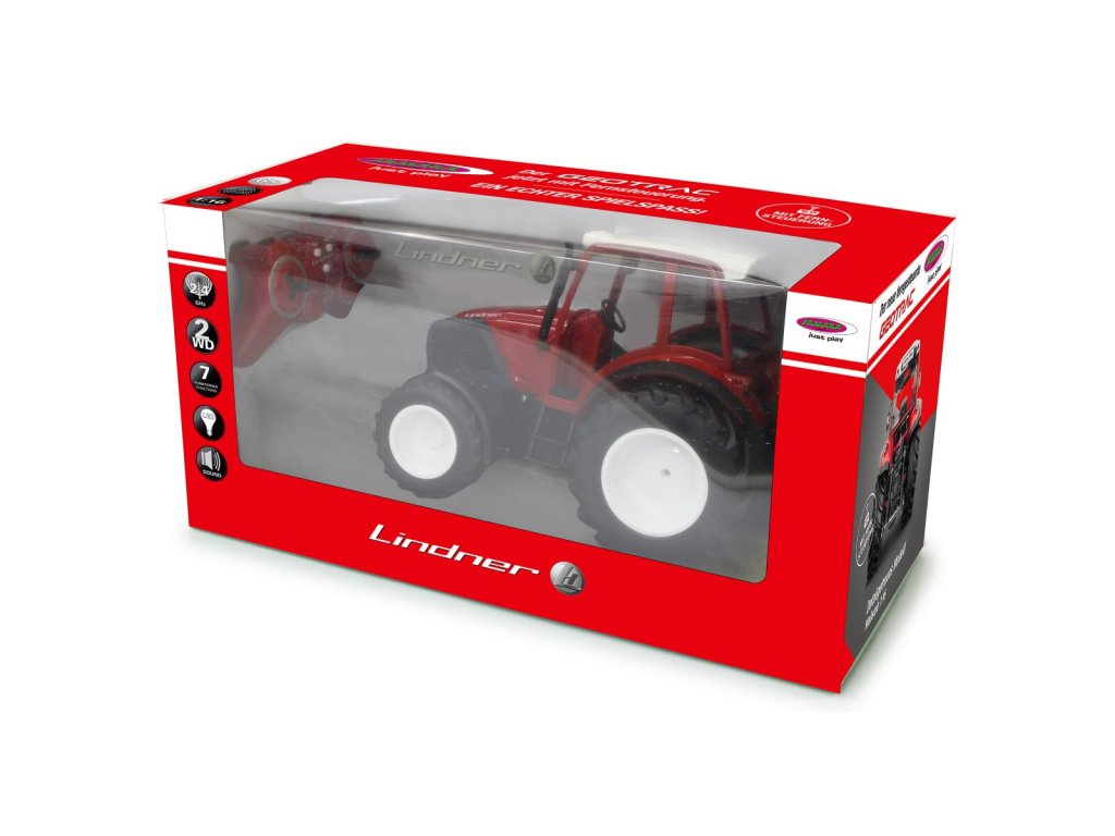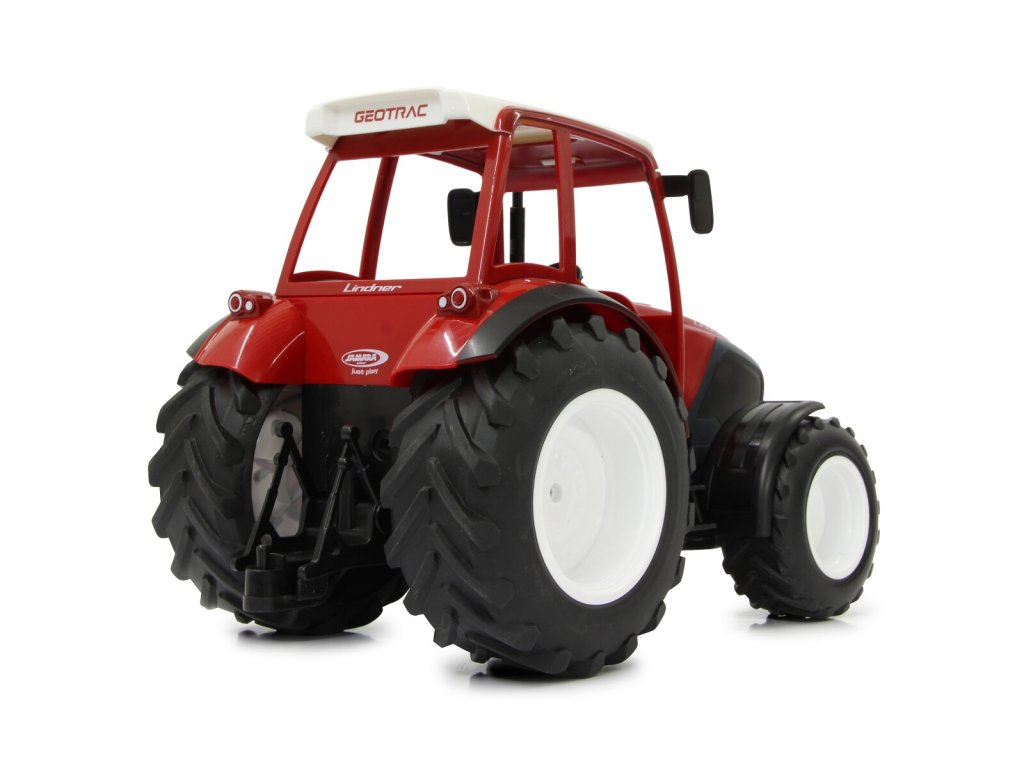 The fascination with large agricultural machines is unbroken. Now comes a great remote-controlled tractor from Jamara. The Lindner Geotrac is one of the big workhorses on the land. This tractor in typical Linder red is officially licensed by the manufacturer and has an extra sturdy chassis. Large tread tyres, indicators and lights at the front are just as much part of the package as the robust, ergonomic 2.4GHz radio remote control for multi-player operation. The Lindner tractor is the perfect addition to the JAMARA agricultural machinery series. All JAMARA attachments such as the tipper, barrel truck and windrower are fully compatible and make the Lindner a really great play experience.