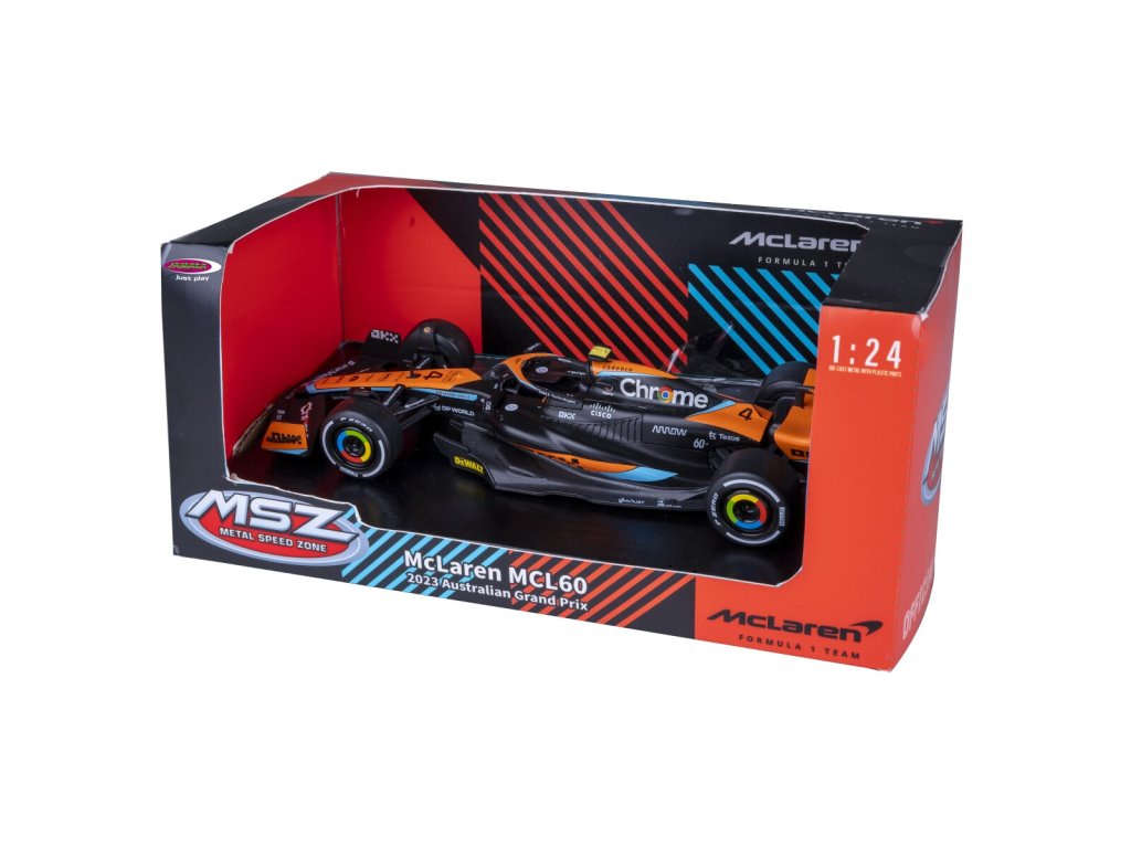 McLaren MCL60 je vůz Formule 1 značky McLaren pro sezónu 2023 a připomíná 60. výročí této značky v motoristickém sportu. S jezdci jako Lando Norris a Oscar Piastri vstoupil McLaren do vysoce konkurenční sezóny F1 2023 s vozem MCL60 – závodním vozem, který spojuje techniku, rychlost a tradici na nejvyšší úrovni. JAMARA přináší tento jedinečný vůz do vaší sbírky v podobě vysoce kvalitního kovového modelu DIECAST v měřítku 1:24 plného jemných detailů, které potěší každého fanouška. Tento oficiálně licencovaný model zaujme svým věrným designem velmi podobným originálu. V každém detailu vyjadřuje dynamiku a přesnost moderního vozu Formule 1. Vysoce kvalitní gumové pneumatiky zajišťují autentický vzhled a pevná konstrukce DieCast zaručuje, že tento jedinečný kousek vydrží každému sběrateli opravdu dlouho. McLaren MCL60 od JAMARA není jen působivým středobodem vaší vitríny, ale také skutečný vrchol pro milovníky motoristického sportu.