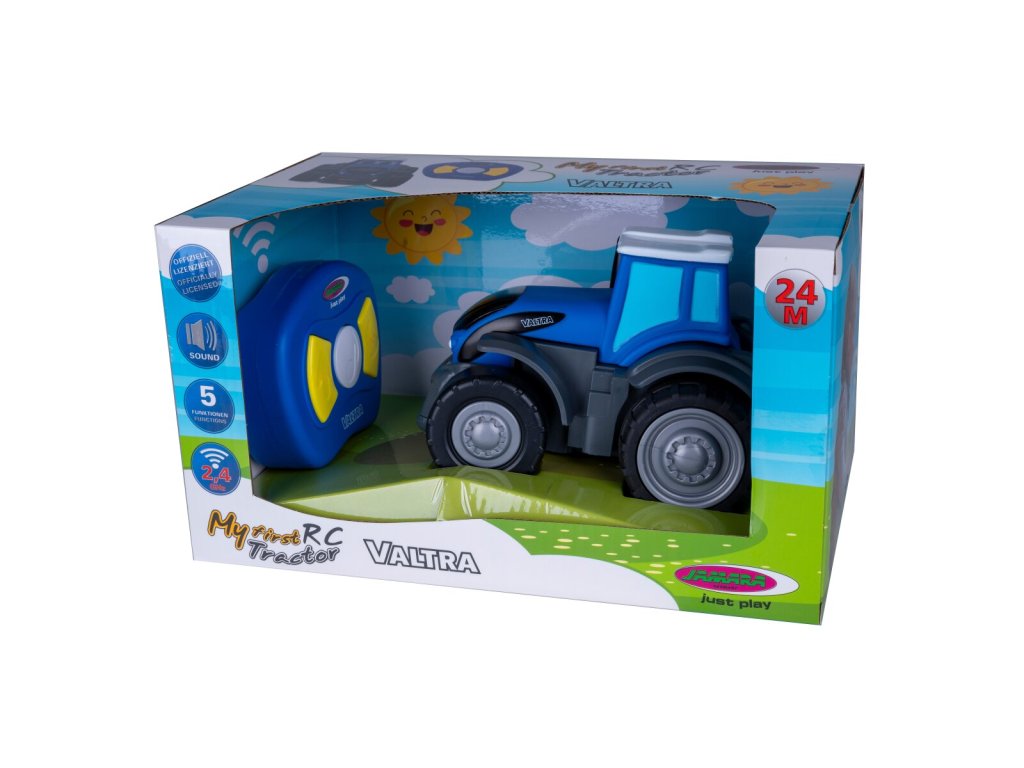Řada "My First RC" od společnosti JAMARA je určena pro nejmenší fanoušky zemědělských strojů. První dálkově ovládané vozidlo je pro děti vždy něčím výjimečným. Malý traktor Valtra s přátelskou tváří je ideální pro děti od 2 let. Ergonomicky navržené dálkové ovládání padne do malých rukou. Bezpečná frekvence 2,4 GHz navíc umožňuje řídit několik traktorů najednou. Ovladač s velkými tlačítky po stranách a velkým klaksonem uprostřed umožňuje řízení vpřed a vzad. Tut-tut -přijíždí roztomilý traktor Valtra, a aby se při couvání nic nestalo, zazní výstražný tón - stejně jako u skutečného velkého traktoru. Přichází zábava pro malé farmáře na hrací koberce v dětských pokojích.