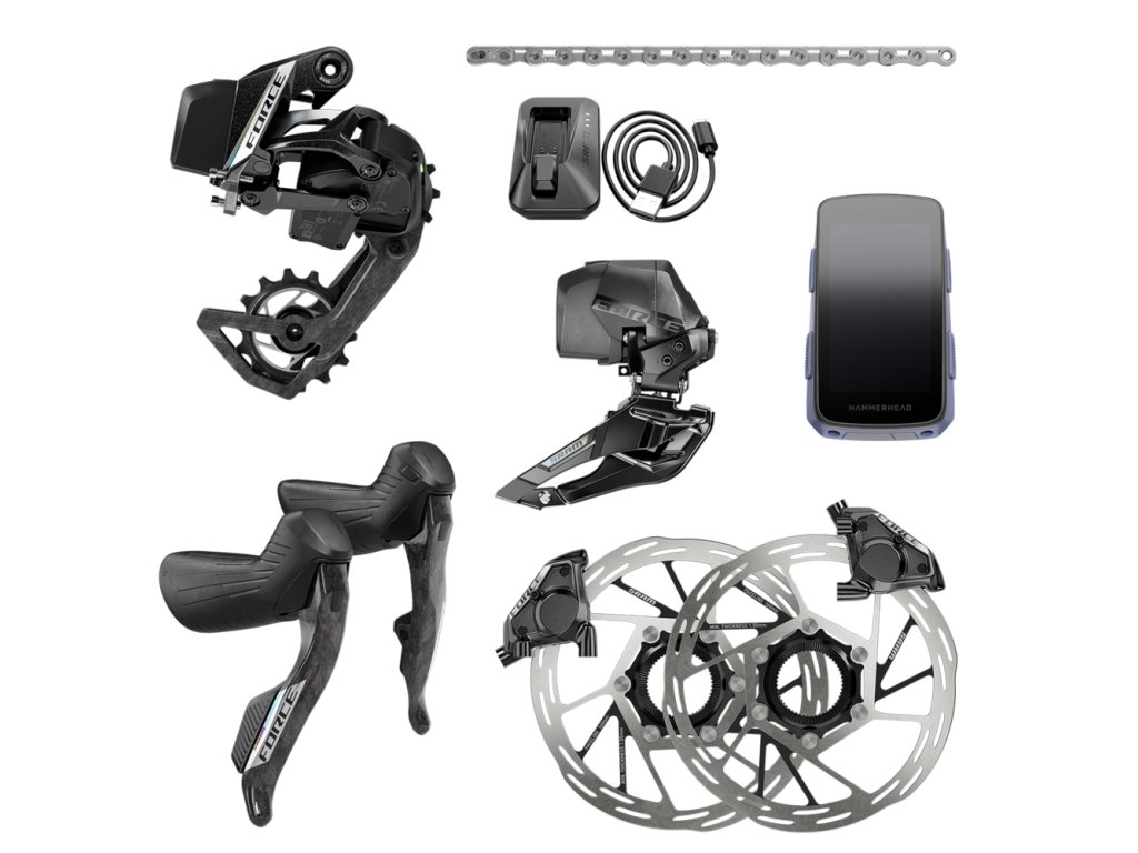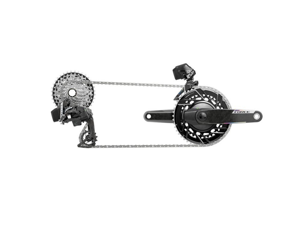Sada SRAM Force AXS 2X E1 Electronic HRD (brzdové/řadící páky s FM třmeny, řetěz Force 114čl., přehazovačka max. 36z s baterii, přesmykač s baterii, 2x kotouč Paceline A2 CL 160mm,nabíječka, návod)