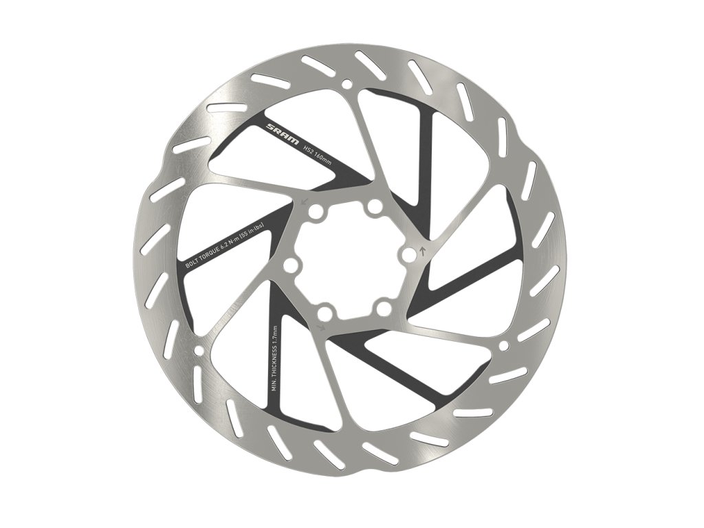 Kotouč SRAM HS2 160mm 6-šroub (v balení šrouby) RoundedZcela nový kotouč HS2 je specifický navržený pro potřeby horských kol, aby vylepšil brzdnou výkonnost, odvod tepla a zároveň snížil hlučnost. Kotouč HS2 využívá nový vzorek brzdné plochy za účelem vylepšení kontaktu s brzdovými destičky a má zapuštěné paprsky s nátěrem pro rozptýlení tepla, což z něj dělá výkonnější a tišší kotouč s nejlepším odvodem tepla ve své třídě.