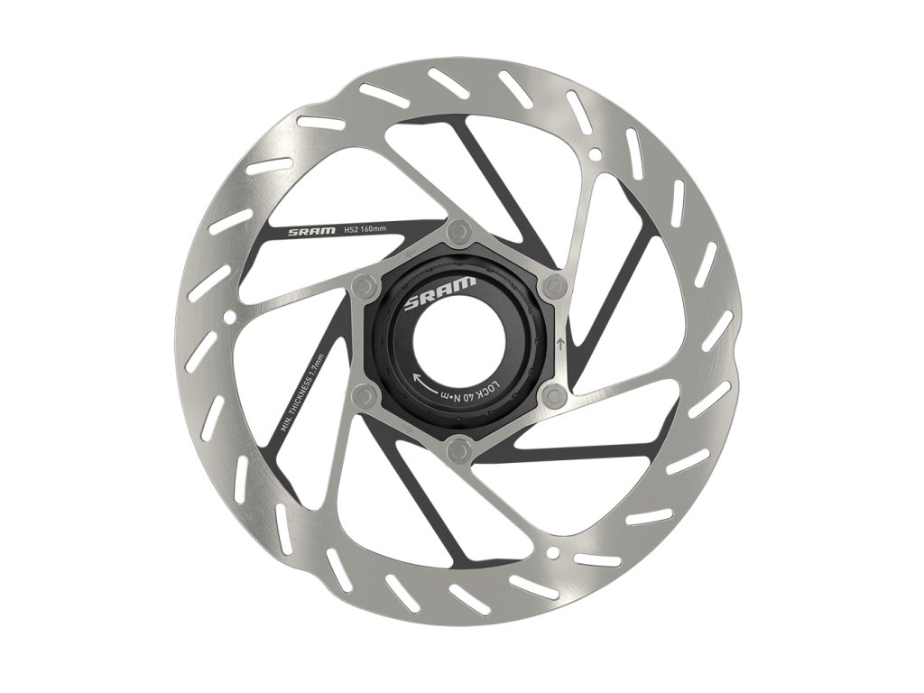 Kotouč SRAM HS2 160mm Center Lock (lockring není součástí balení) RoundedZcela nový kotouč HS2 je specifický navržený pro potřeby horských kol, aby vylepšil brzdnou výkonnost, odvod tepla a zároveň snížil hlučnost. Kotouč HS2 využívá nový vzorek brzdné plochy za účelem vylepšení kontaktu s brzdovými destičky a má zapuštěné paprsky s nátěrem pro rozptýlení tepla, což z něj dělá výkonnější a tišší kotouč s nejlepším odvodem tepla ve své třídě.