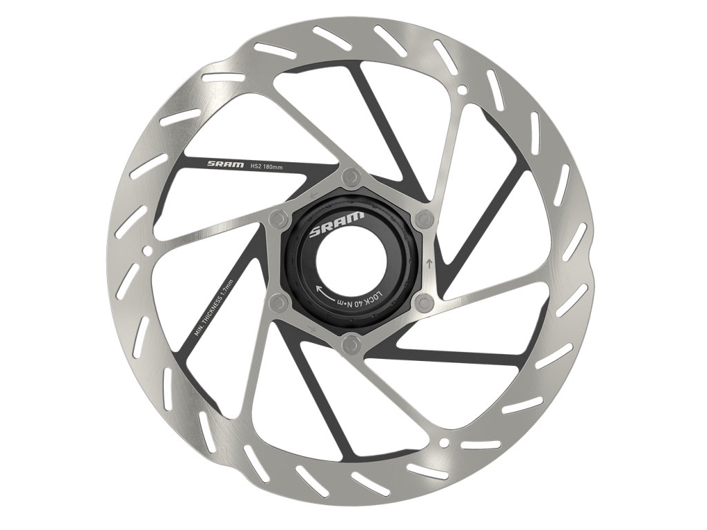 Kotouč SRAM HS2 180mm Center Lock (lockring není součástí balení) RoundedZcela nový kotouč HS2 je specifický navržený pro potřeby horských kol, aby vylepšil brzdnou výkonnost, odvod tepla a zároveň snížil hlučnost. Kotouč HS2 využívá nový vzorek brzdné plochy za účelem vylepšení kontaktu s brzdovými destičky a má zapuštěné paprsky s nátěrem pro rozptýlení tepla, což z něj dělá výkonnější a tišší kotouč s nejlepším odvodem tepla ve své třídě.