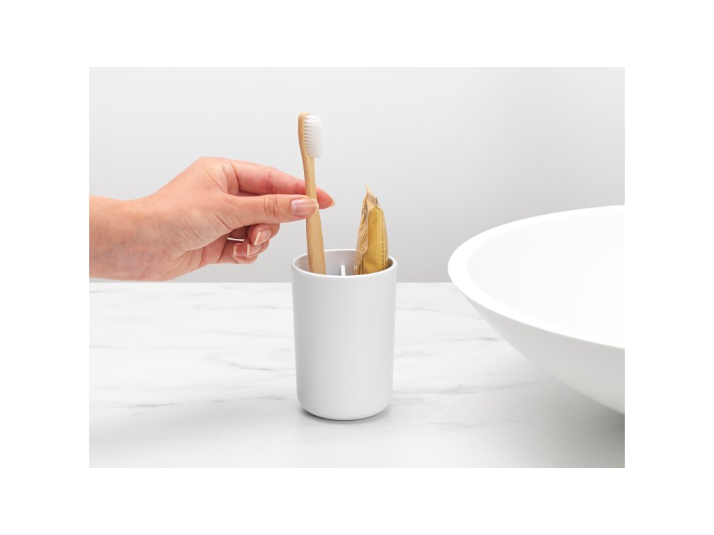 Je těžké najít držák na zubní kartáčky, který by se hodil do vaší stylové koupelny, ale tento držák na zubní kartáčky Brabantia ReNew ano!