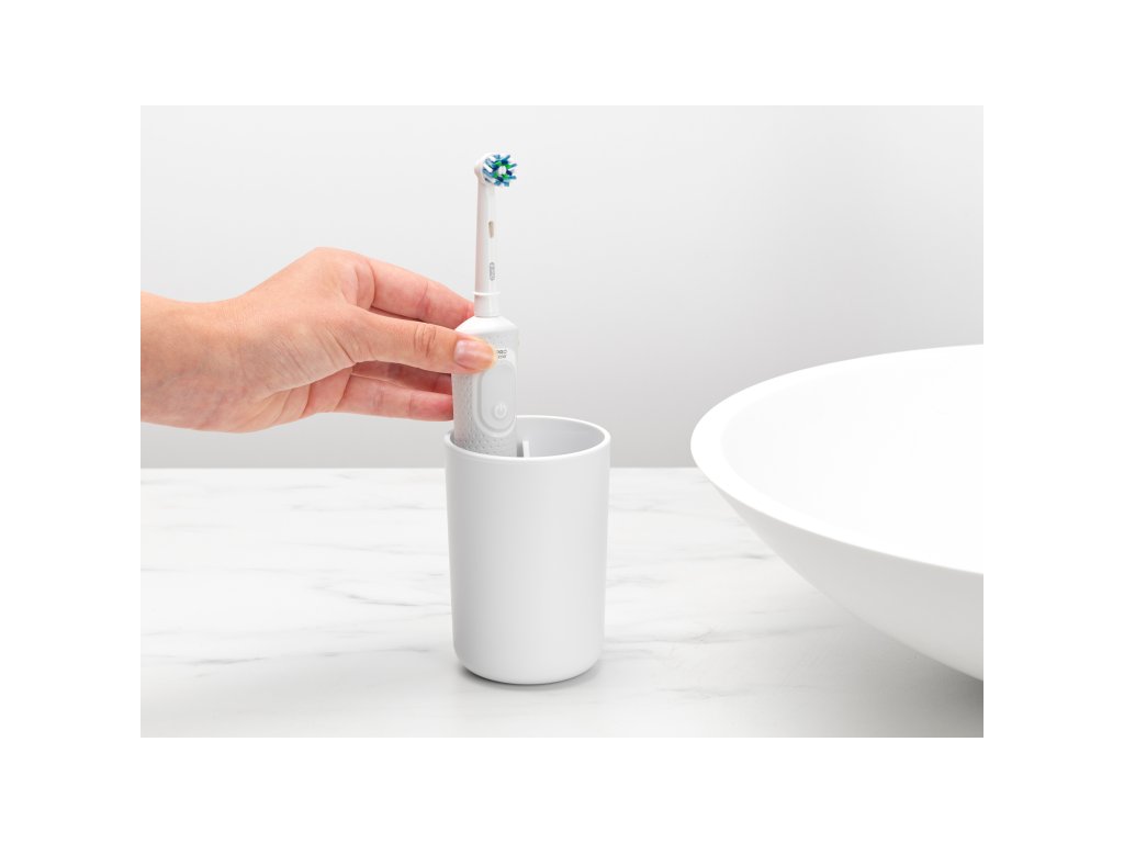 Tento robustní a stabilní držák udrží vaše kartáčky a zubní pastu pohromadě, ve svislé poloze, v suchu a čistotě.