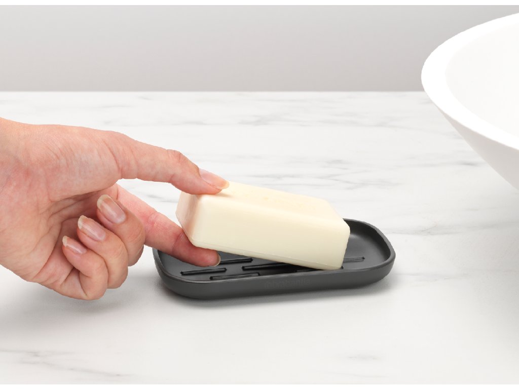 Miska na mýdlo je žebrovaná, aby udržela vaše mýdlo suché a dostatečně velká, aby udržela celou mýdlovou kostku.