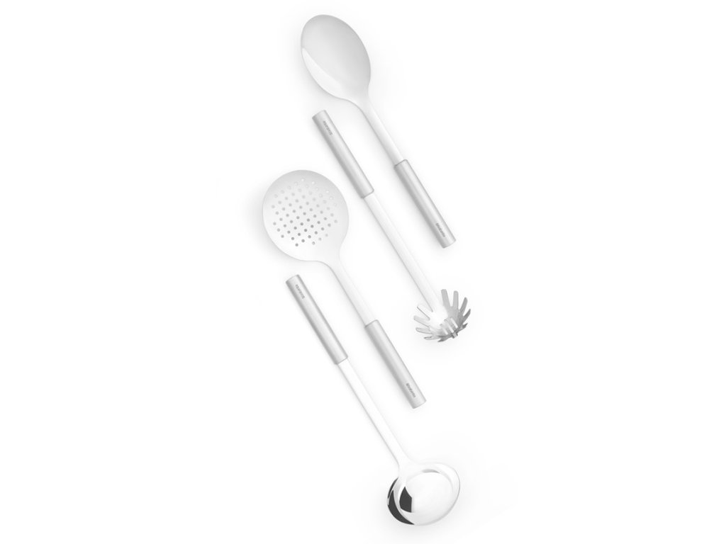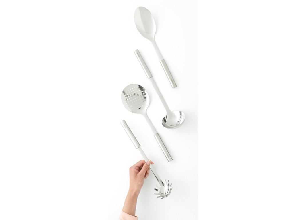 Tato vysoce kvalitní sada kuchyňského náčiní Profile se skládá z naběračky na polévku, naběračky na zeleninu, naběračky na těstoviny a servírovací lžíce.