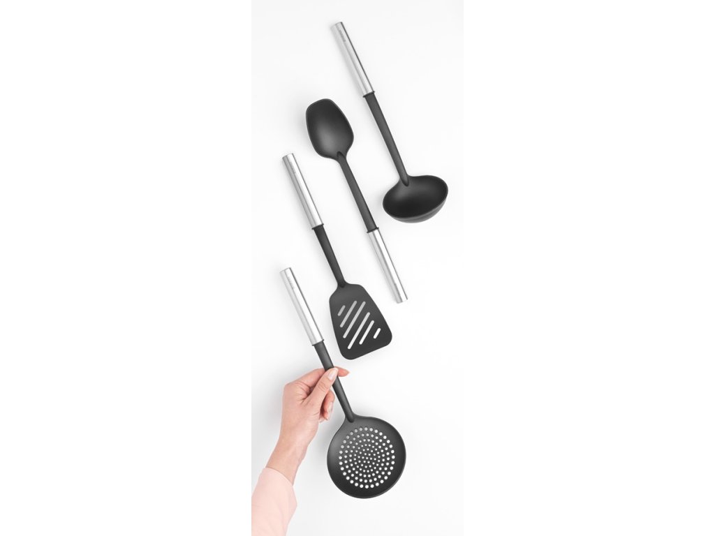 Tato vysoce kvalitní sada kuchyňského náčiní Profile se skládá z naběračky na polévku, naběračky na zeleninu, servírovací lžíce a obracečky.
