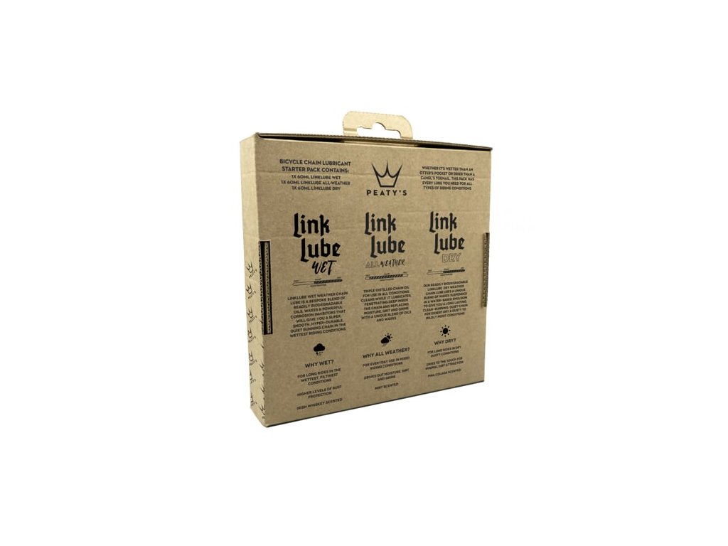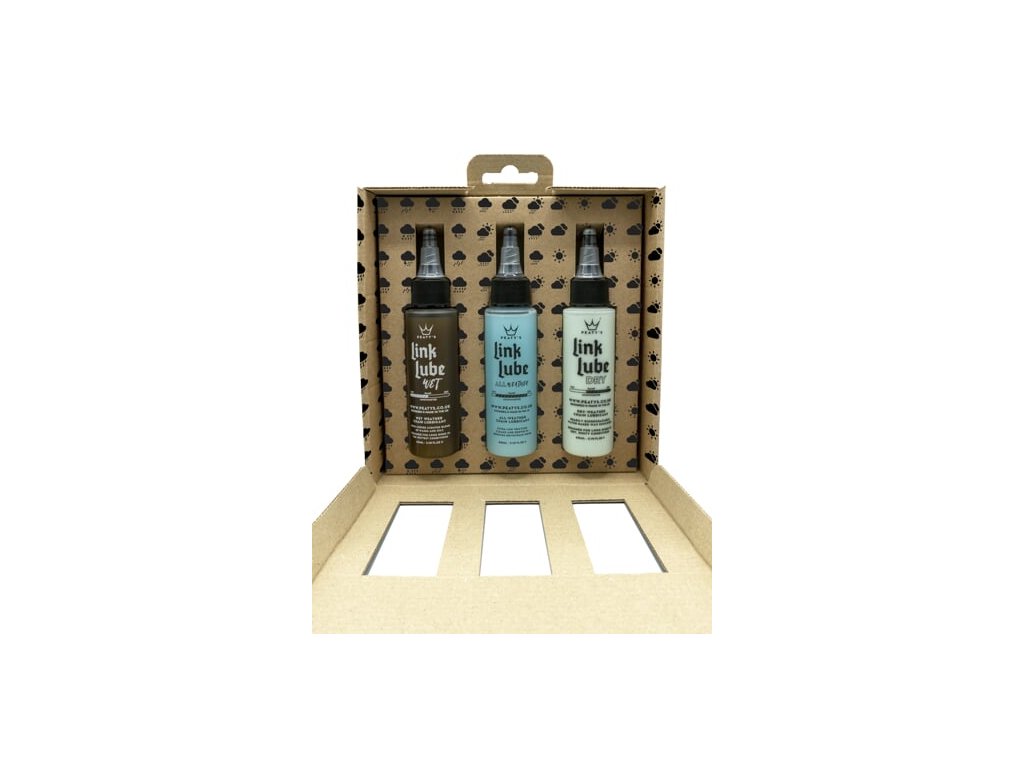 V sadě naleznete 1x 60ml LinkLube Wet, 1x 60ml LinkLube All Weather a 1x LinkLube Dry.