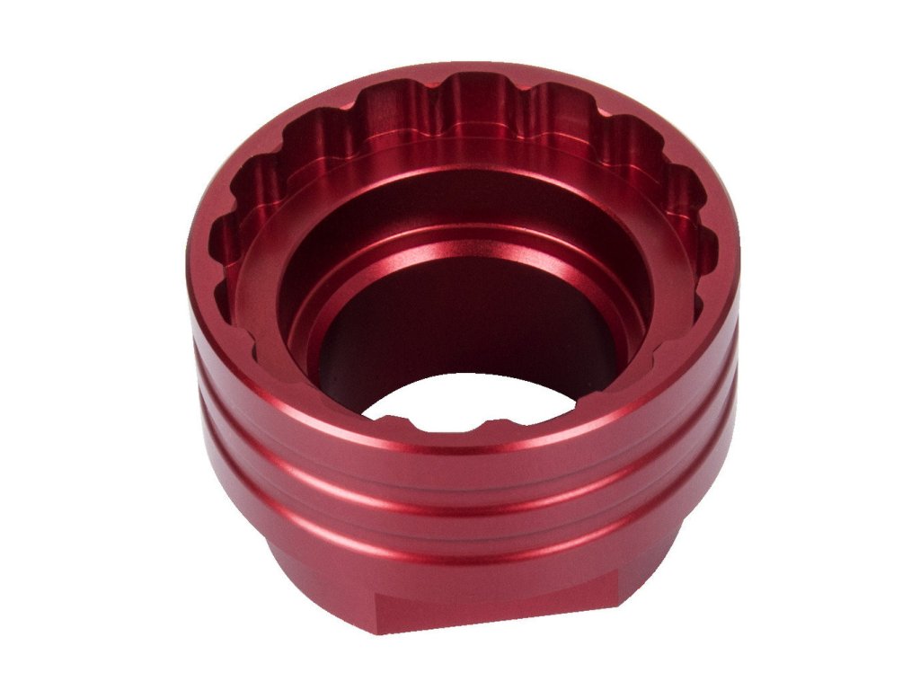 Unior Stahovák Shimano Direct Mount lockring tool, SKNářadí navržené pro práci s hliníkovými pojistnými maticemi (lockringy) převodníků Shimano s přímou montáží. Přesně CNC-obráběné, aby zabezpečilo precizní a přesné dosedání na plochy matice. Červený elox umožňuje jasné rozlišení v dílně. Nářadí je kompatibilní s nástavcem Crow foot a 1/2” momentovým klíčem pro přesné nastavení utahovacího momentu.