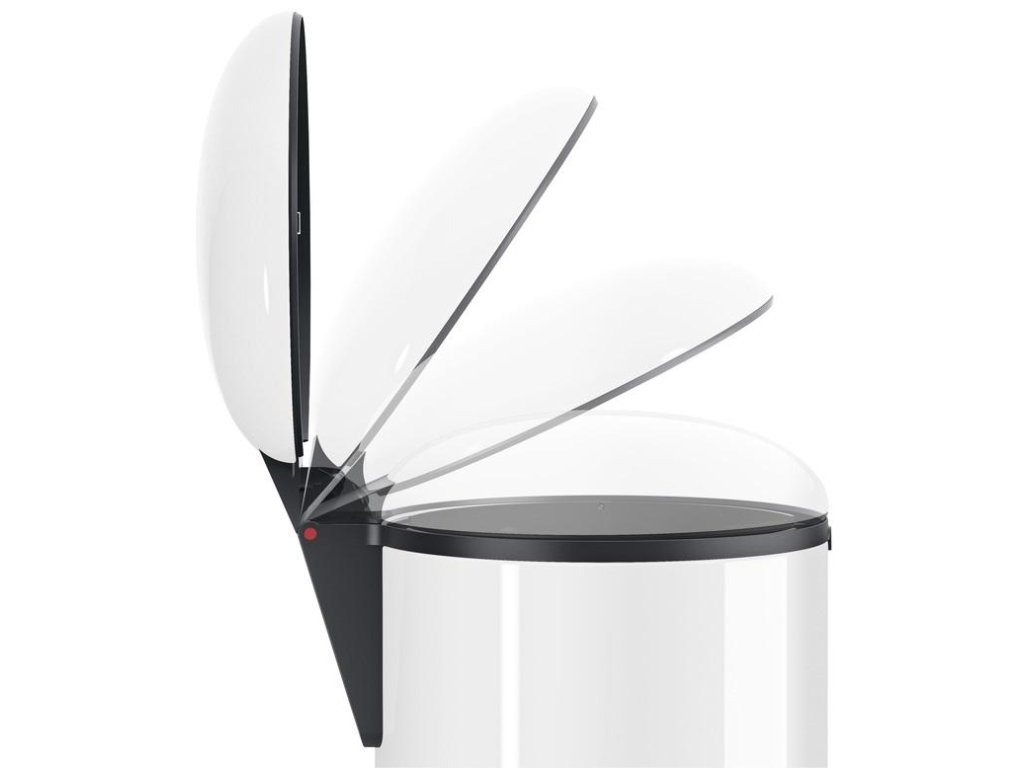 Speciální designová nádoba na odpadky se širokým pedálovým mechanizmem a tlumeným zavíráním víka (Soft Close).