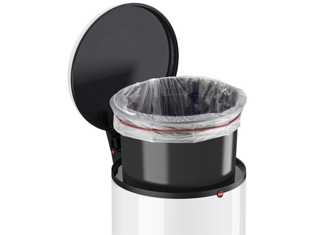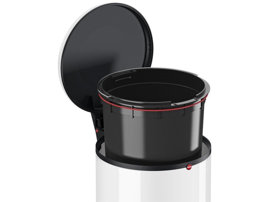 Speciální designová nádoba na odpadky se širokým pedálovým mechanizmem a tlumeným zavíráním víka (Soft Close).