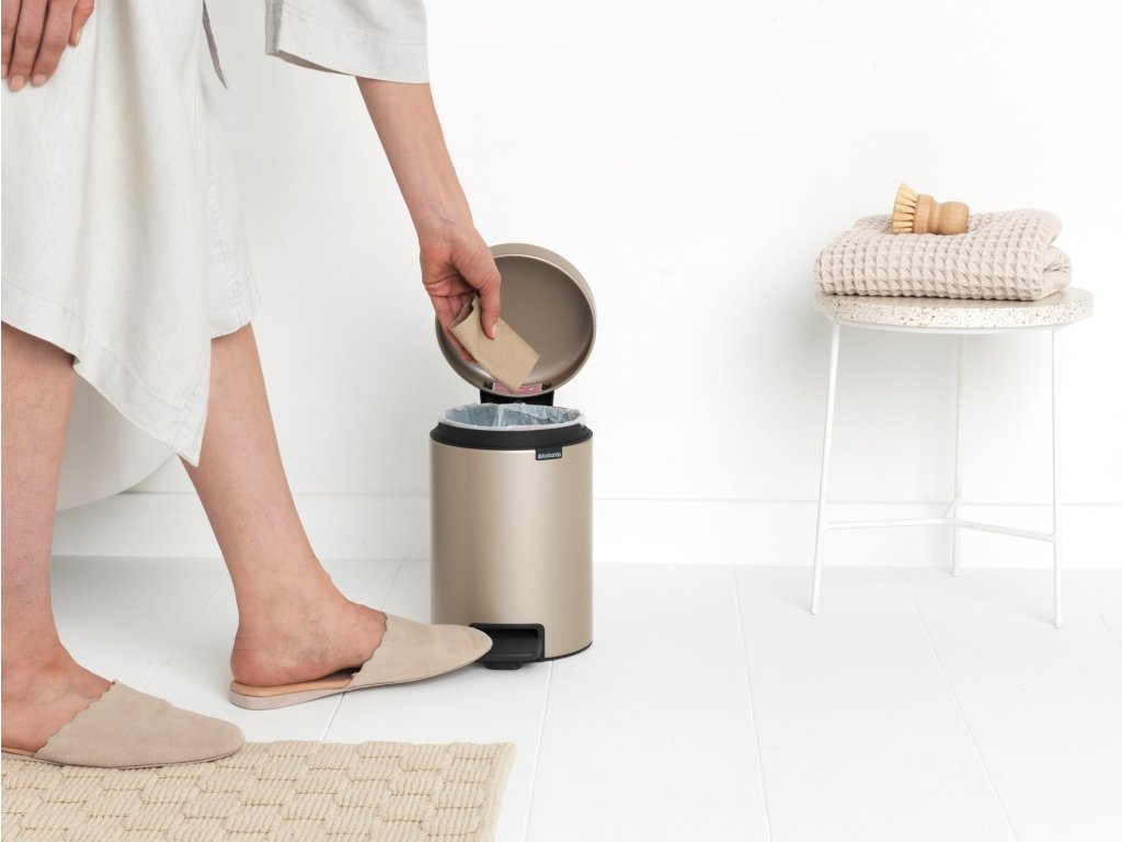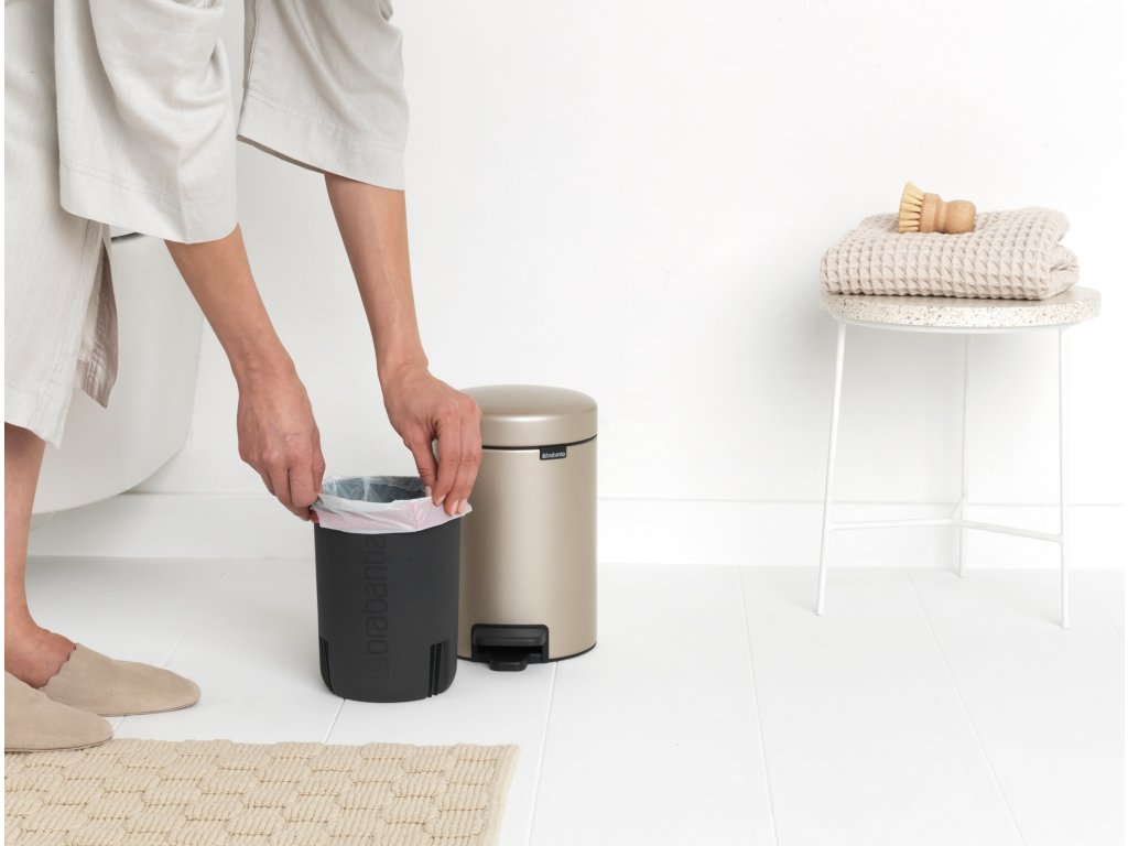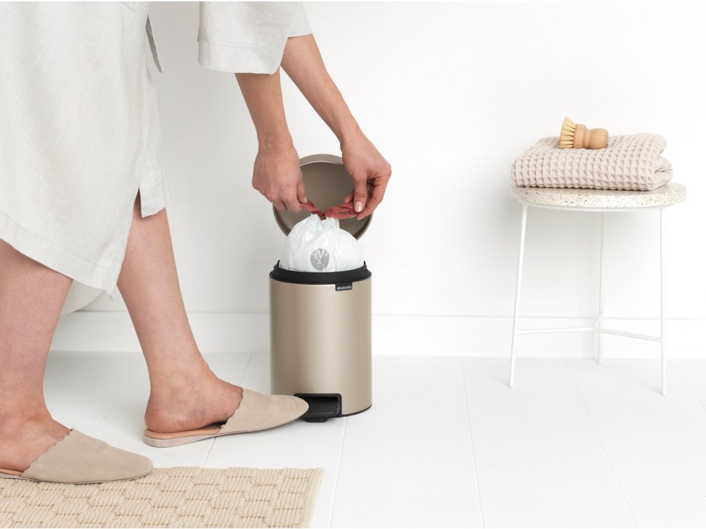 Přidejte trochu stylu s roztomilým Brabantia pedálovým košem NewIcon 3 litry. Nadčasový design s víkem odolným proti zápachu a pomalým zavíráním. Tento extra malý pedálový koš NewIcon je samozřejmě hygienický, snadno se otevírá a také se udržuje v čistotě. Ideální pro vaši koupelnu, toaletu nebo jakoukoli jinou místnost, kde by se mohl hodit velký malý koš.