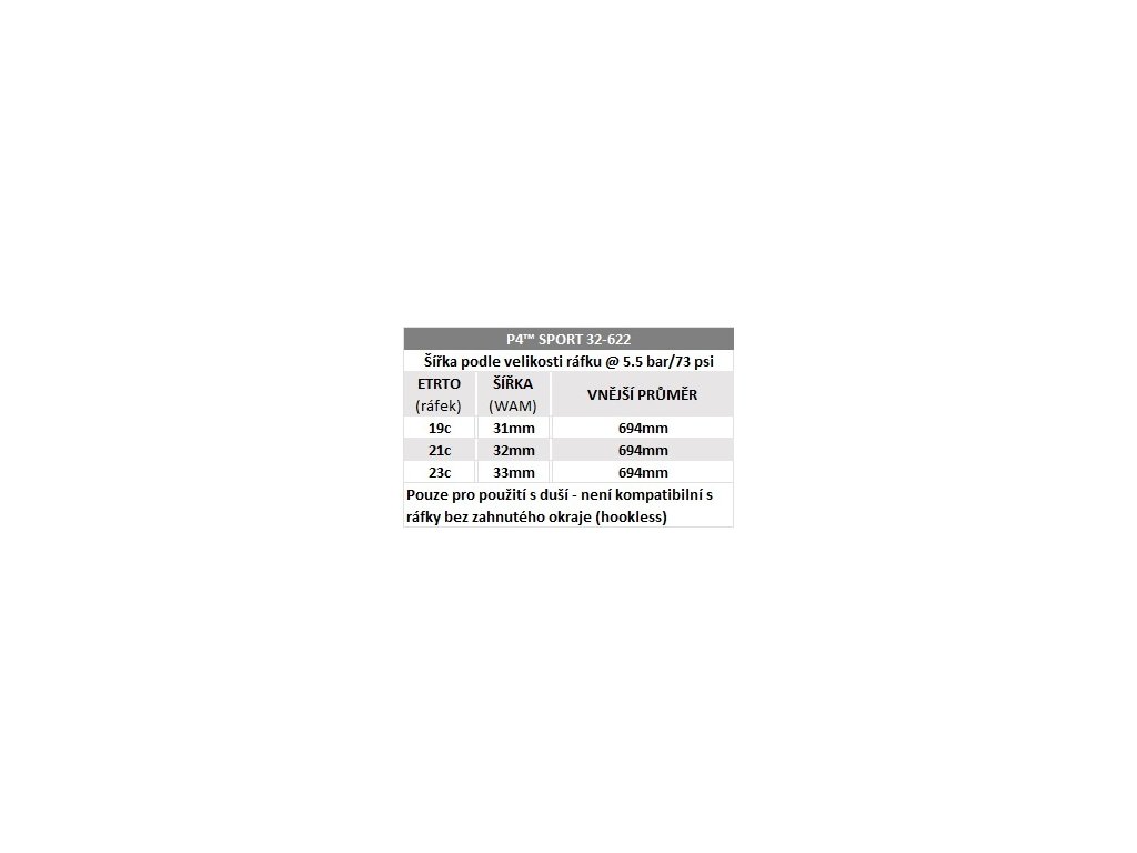 Plášť P4™ Sport je navržený pro potřeby vytrvalostních cyklistů a všech, kdo kladou důraz na odolnost jako klíčový výkonový parametr. Konstrukce využívá technologii TechBELT Road s nylonovou konstrukcí o hustotě 26 TPI, která nabízí ideální rovnováhu mezi pevností a pružností – pro hladkou, ale zároveň odolnou jízdu.