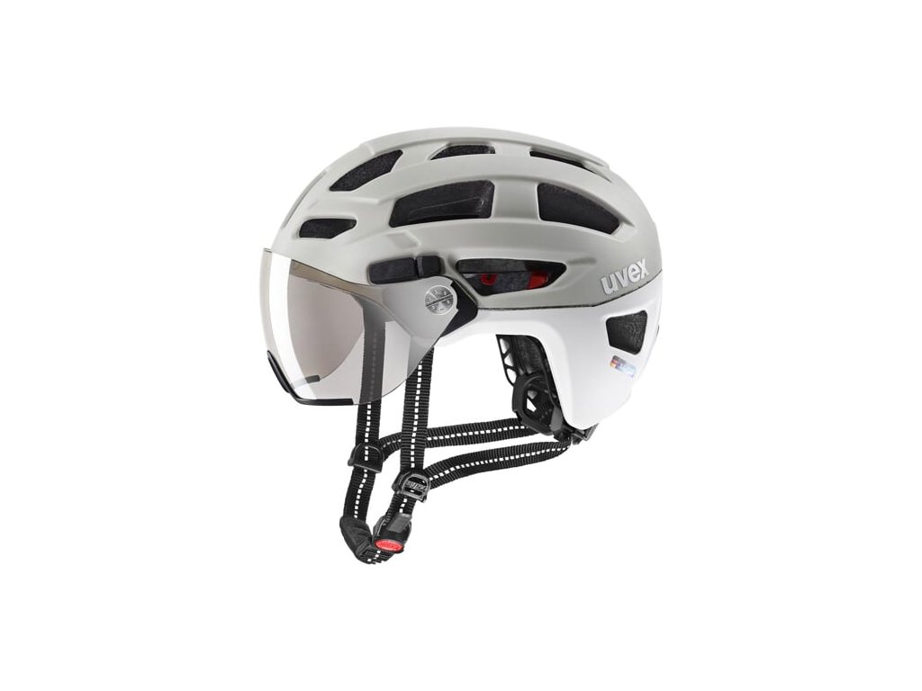 Je to první tvarovaná helma s integrovaným hledím do každého počasí ve stříbrné barvě litemirror (kategorie ochrany 1). V městském provozu poskytuje zorník Uvex finale vašim očím optimální ochranu před sluncem a větrem. Můžete jej dokonce nosit přes dioptrické brýle a volitelně jej upgradovat na tmavší model pro silnější ochranu před sluncem.