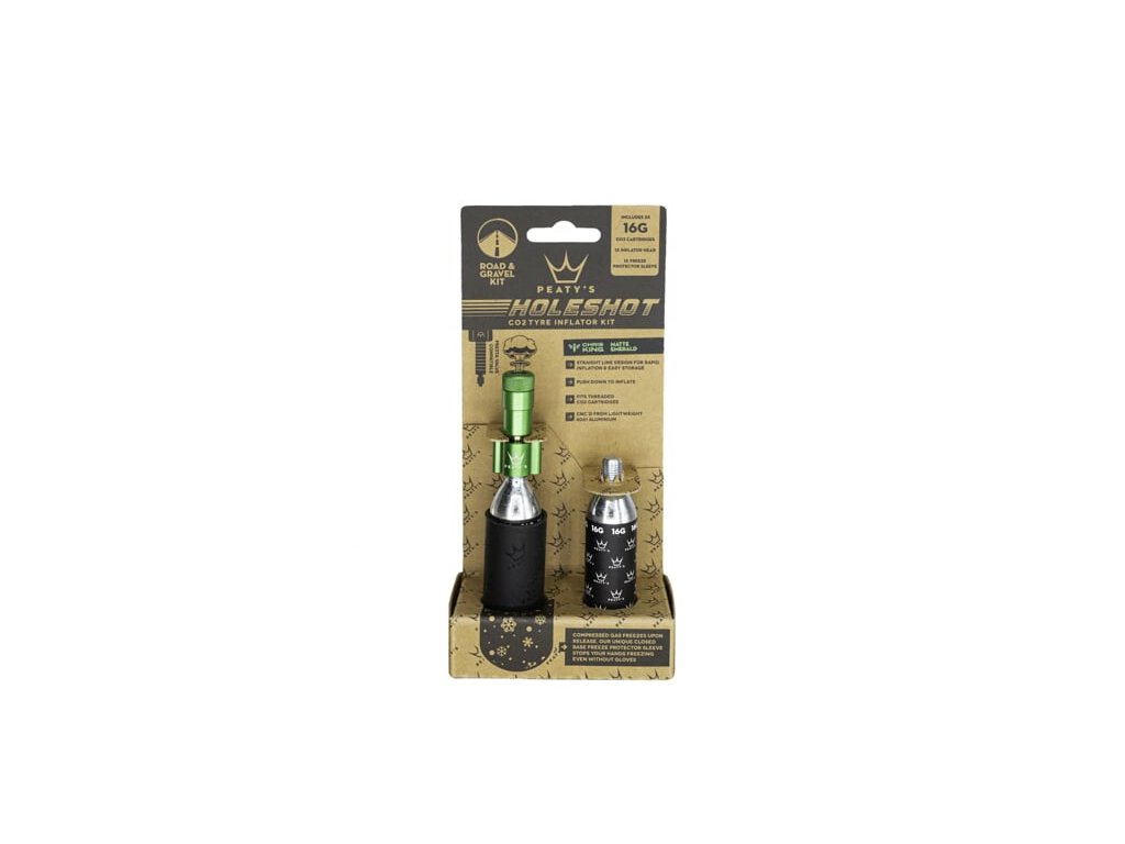 PEATY'S HOLESHOT CO2 PUMPA + BOMBIČKY 2 KS - ROAD & GRAVEL (16G) - EMERALD