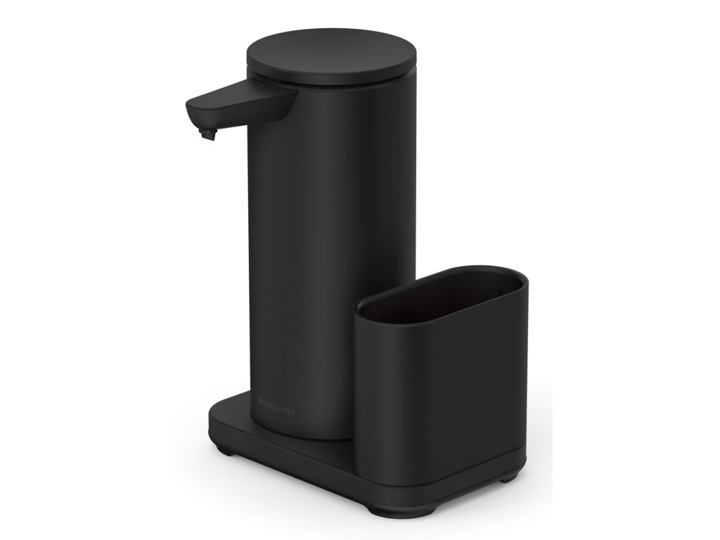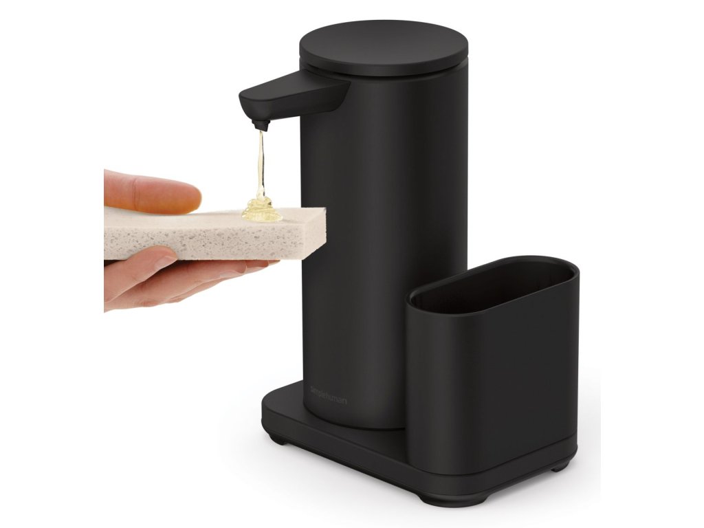 Bezdotykový dávkovač mýdla Simplehuman – 414 ml + držák na houbičku, matná černá ocel