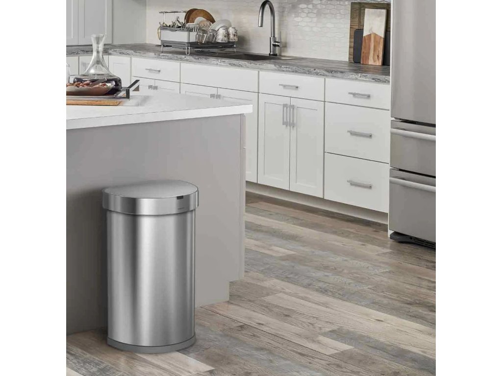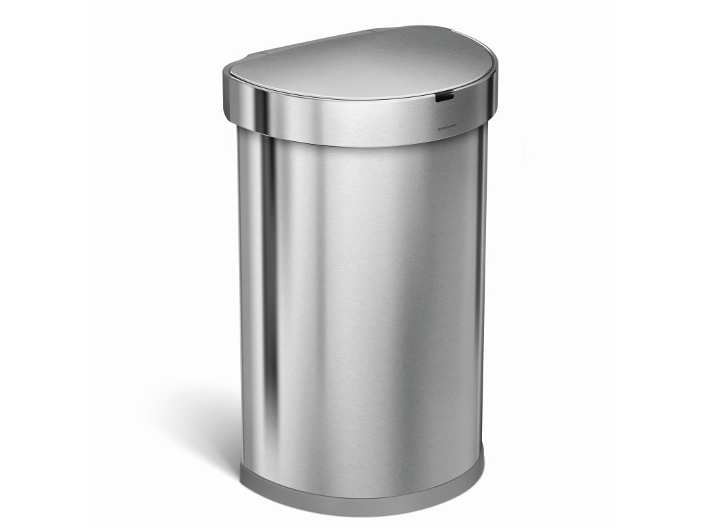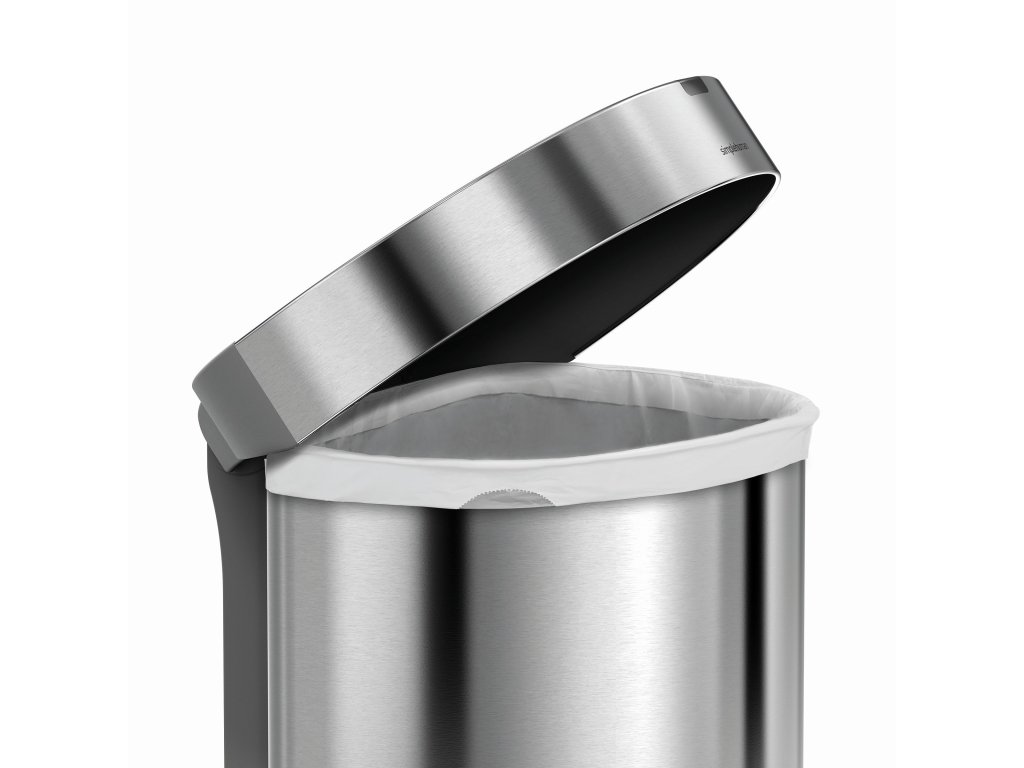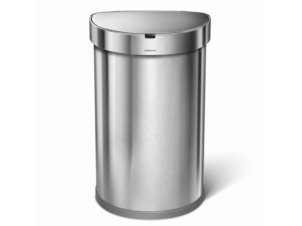 Bezdotykový odpadkový koš Simplehuman - 45 l, půlkulatý, matná ocel, FPP, kapsa na sáčky
