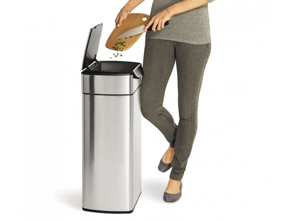 Dotykový odpadkový koš Simplehuman – 30 l, hranatý, matná nerez ocel, FPP