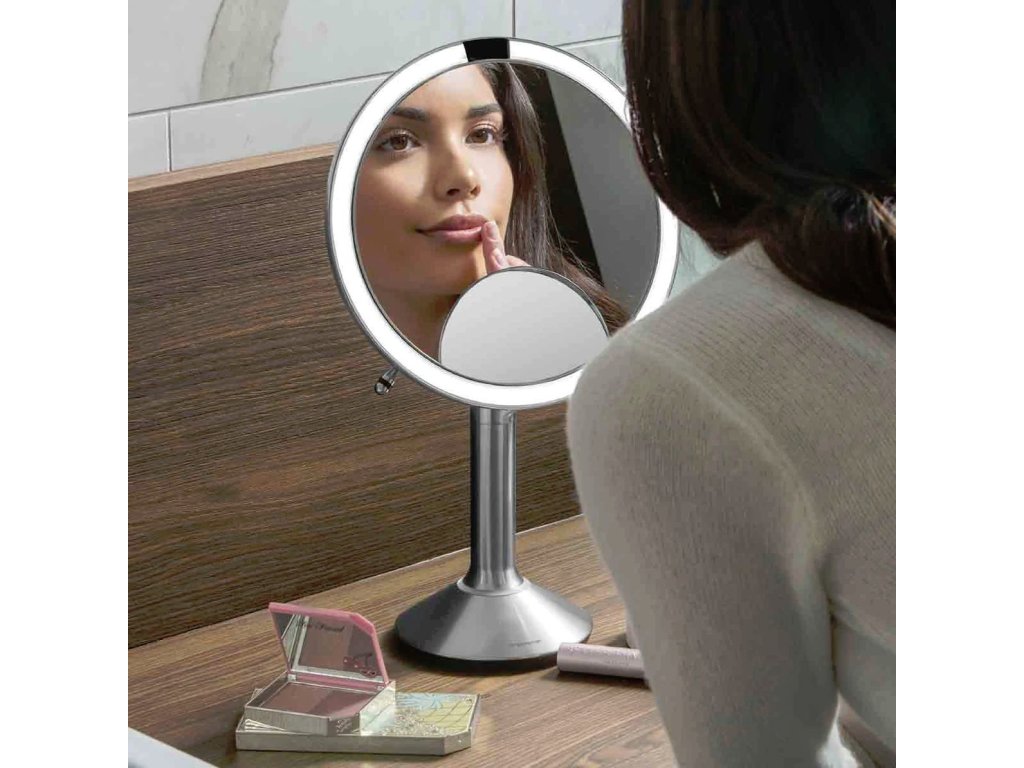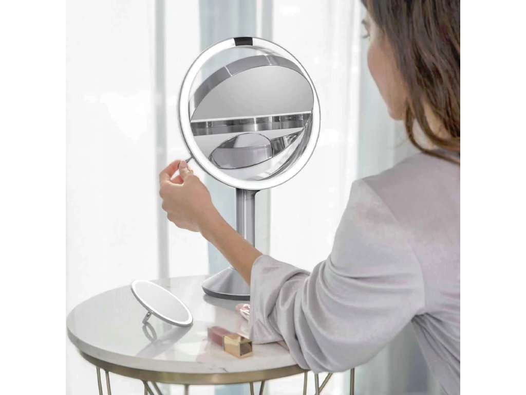 Objevte nové zrcátko od Simplehuman, které v sobě kombinuje vylepšené Tru-Lux LED osvětlení, unikátní design a tři zrcátka s různým přiblížením – 1x, 5x a 10x. Jednoduše vše, co potřebujete pro dosažení profesionálního makeupu. Zrcátko je nabíjecí (na jedno plné nabití vydrží až 5 týdnů při každodenním používání) a tak ho můžete pohodlně přemístit z místa na místo.