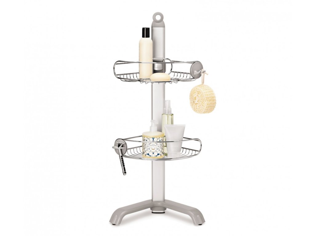Nastavitelný set poliček a držáku do sprchy, Simplehuman – rohový, matná ocel, elox.hliník