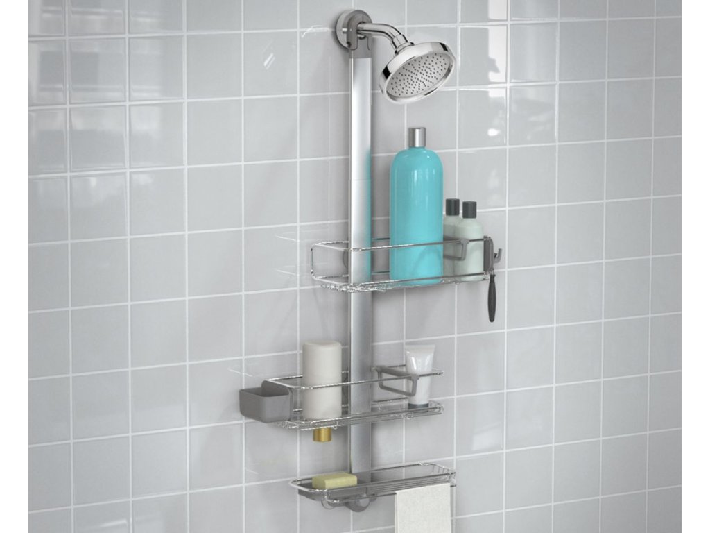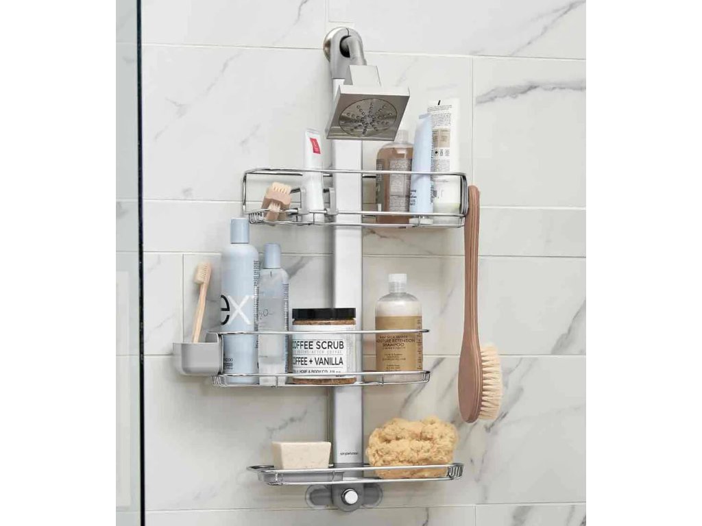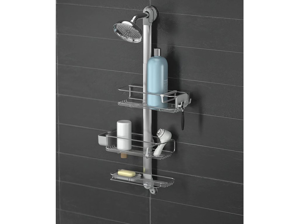 Nastavitelný set poliček a držáku do sprchy, Simplehuman Caddy PLUS závěsný, nerez ocel