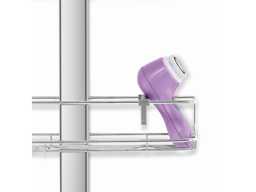 Poličky jsou vybaveny praktickými plastovými přepážkami a dalšími doplňky. Do nich si pohodlně odložíte veškeré moderní potřeby pro sprchování (např. kartáček na obličej, elektrický kartáček atd.)