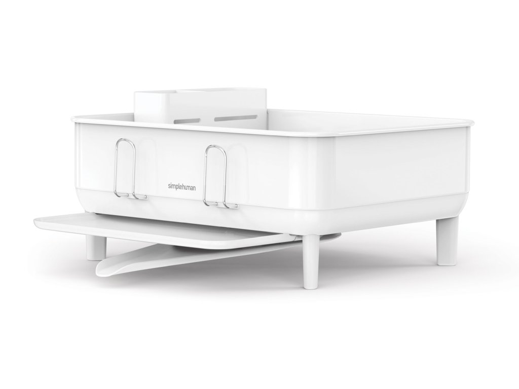 Odkapávač na nádobí Simplehuman Compact, rám z bílé oceli, bílý plast, FPP