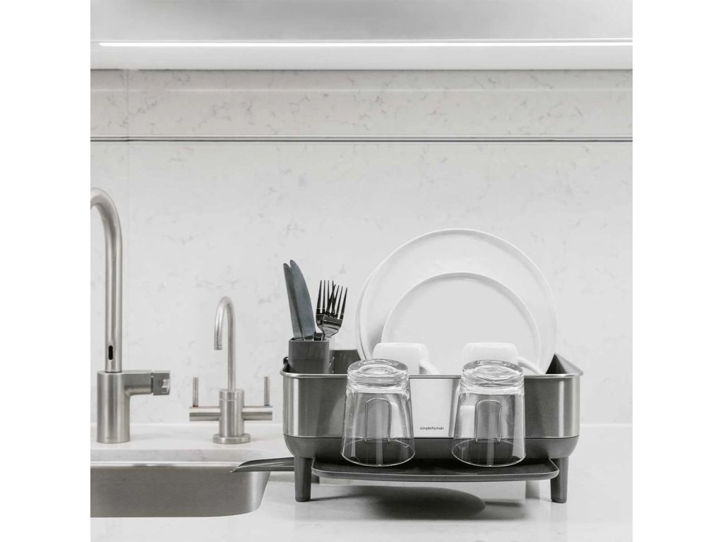 Odkapávač na nádobí Simplehuman Compact, rám z nerez oceli, šedý plast, FPP