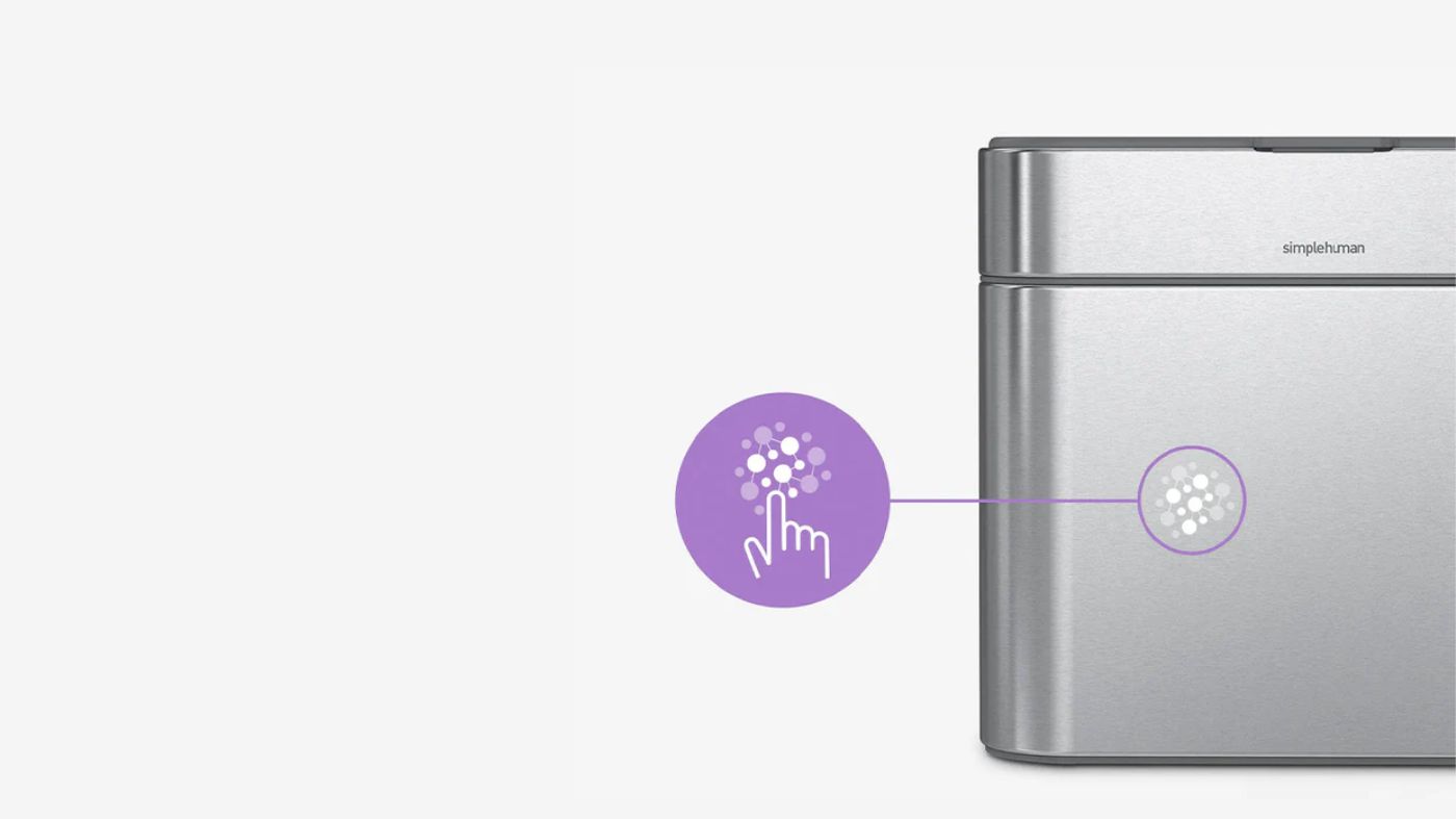 Povrch odpadkového koše je opatřen neviditelnou vrstvou nano-stříbra, která chrání koš před otisky prstů a šířením choroboplodných zárodků.